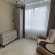 1-комнатная квартира с прекрасным видом на парк Челюскинцев, с изолированной комнатой с кроватью и встроенной мебелью, кондиционером, встроенная кухня с свч, посудомойкой, духовым шкафом, индукционной варочной панелью, ванная комната с тропическим душем, стирально-сушильная машина. Кухня-гостинная с телевизором и диваном, теплый пол. Все для красивой и удобной жизни.