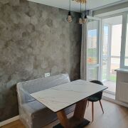 Двухкомнатная квартира с отдельной кухней. Только закончен ремонт. Первое заселение. Квартира полностью укомплектована всей необходимой мебелью и техникой (BOSCH, LG). Окна выходят на противоположные стороны дома. С двух сторон дома есть большая парковка. Развитая инфраструктура, водохранилище Дрозды, неплотная застройка. • Предоплата за первый месяц. • Коммунальные платежи и интернет оплачивает арендатор. • Квартира сдаётся на длительный срок, без животных. • По договору найма.