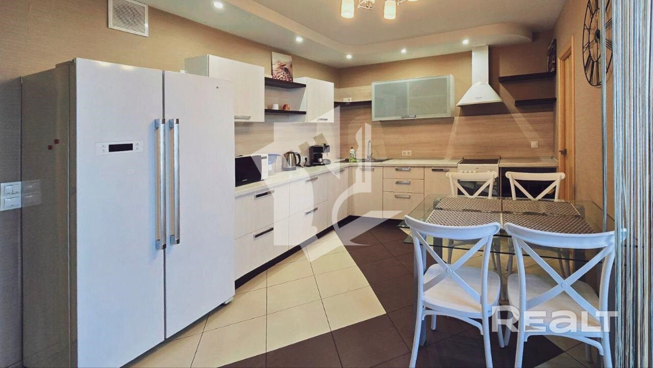 Сдается просторная квартира с панорамными видами на город с двух сторон по адресу: ул. Притыцкого 97 общей площадью по СНБ 91.4 кв.м. Большая кухня-гостиная 17 м2 с выходом на лоджию — идеальное место для семьи и друзей. Квартира укомплектована всем необходимым для комфортного проживания: посудомоечная машина избавит от рутины, кофеварка поможет начать утро с любимого аромата, а кондиционер в спальне обеспечит идеальную температуру в жаркое время года. Вы заезжаете и просто начинаете жить: всё чисто и аккуратно. Утром — солнце, вечером — закат. Отлично развита инфраструктура и транспортное сообщение: метро у подъезда, рядом — ТЦ с кино и гипермаркетами. Для детей — современная площадка во дворе под видеонаблюдением. Удобный и быстрый выезд на МКАД.