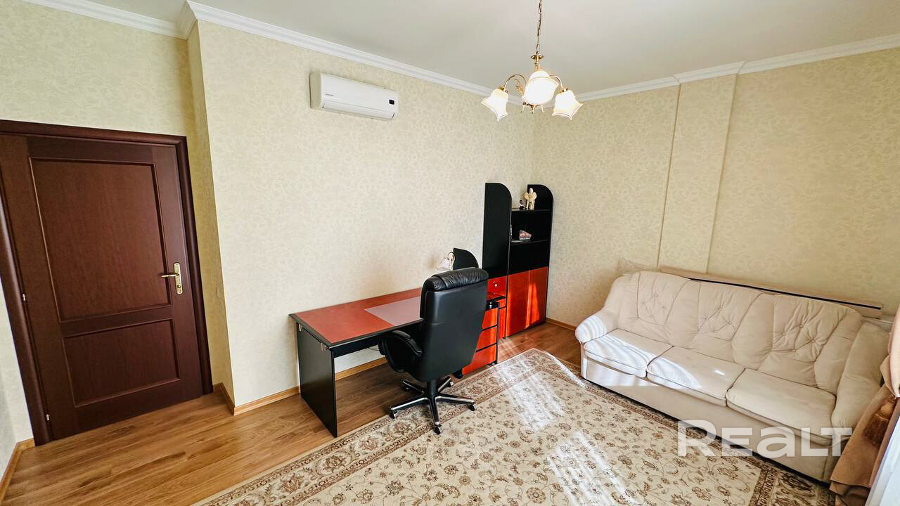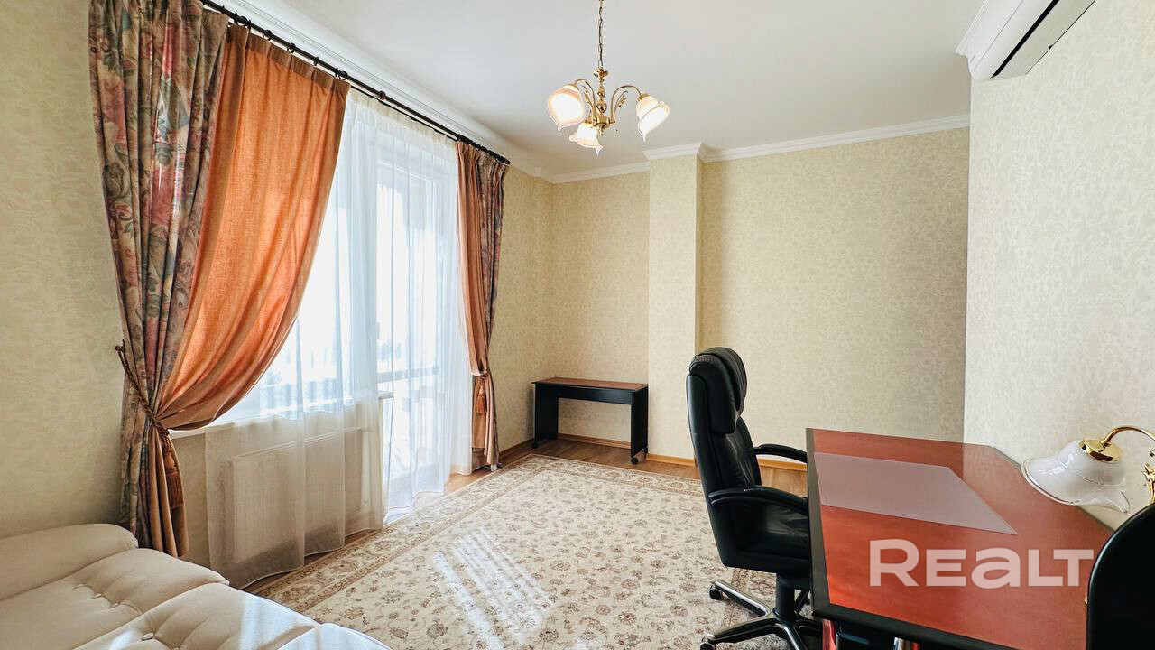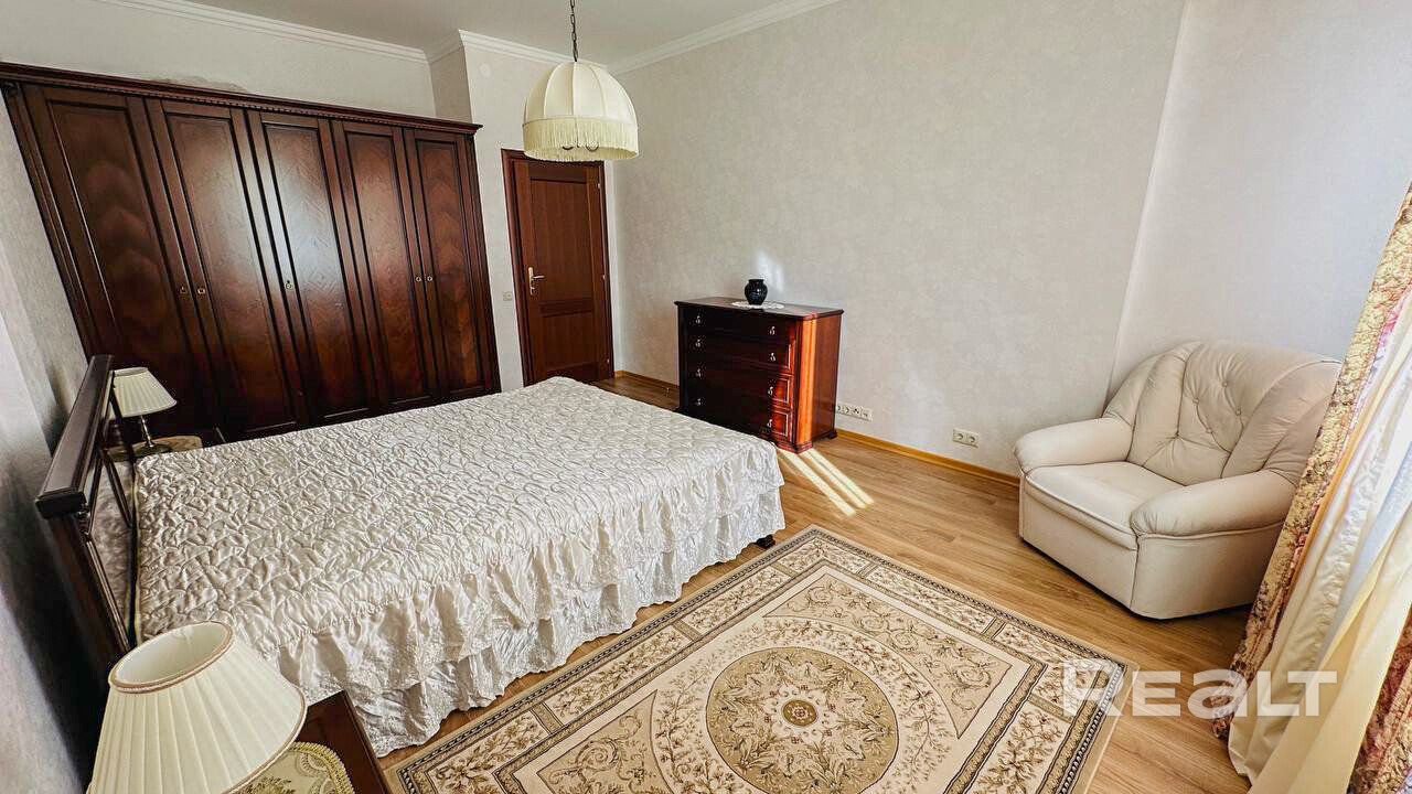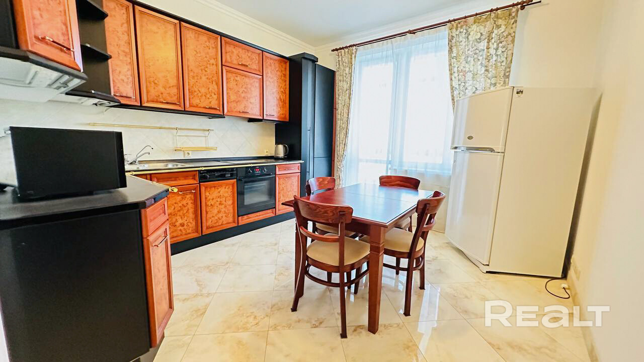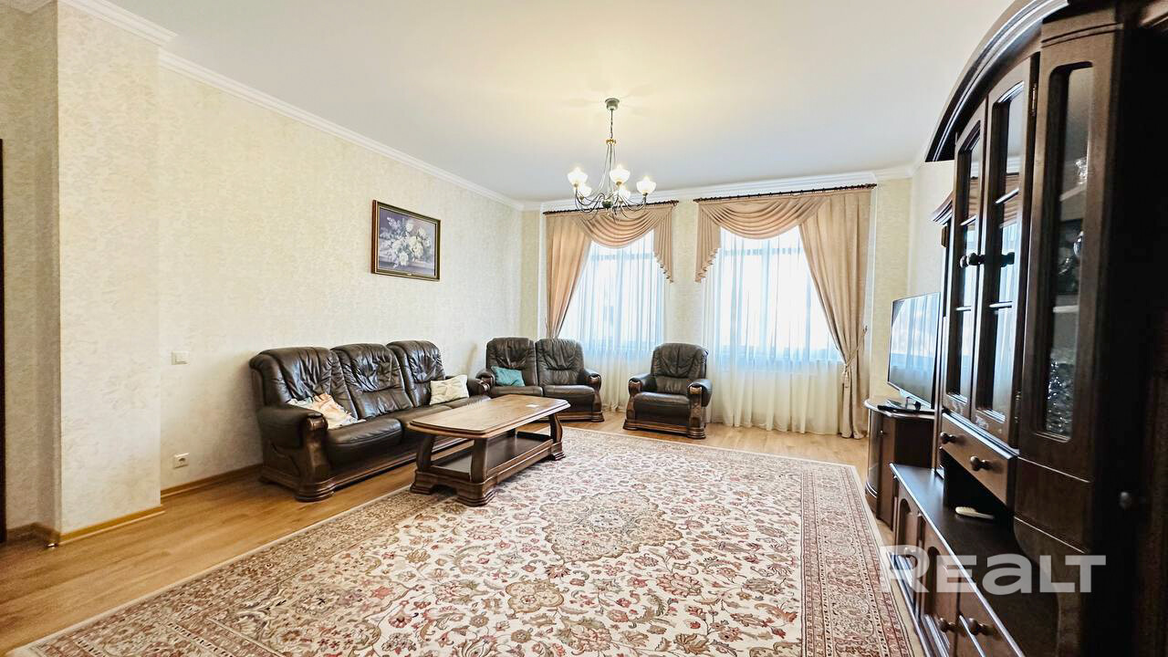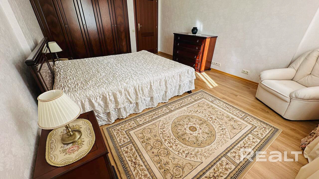 3-х комнатная квартира на ул. Пионерская, 7. Площадь 120 м2. 3 этаж 5-ти этажного дома. 2 спальни и гостиная, 2 санузла, две лоджии застекленные, много места для хранения. В квартире все сделано из натуральных материалов. Есть парковочное место в гараже. Дом расположен в самом престижном районе города Минска, Дрозды. Рядом торговый центр Арена Сити, парк, спортивный комплекс Минск Арена, зеленая зона, велодорожка, озеро. Отлично развитое транспортное сообщение позволяет за 15 минут добраться до центра города. Коммунальные платежи оплачивает арендатор.