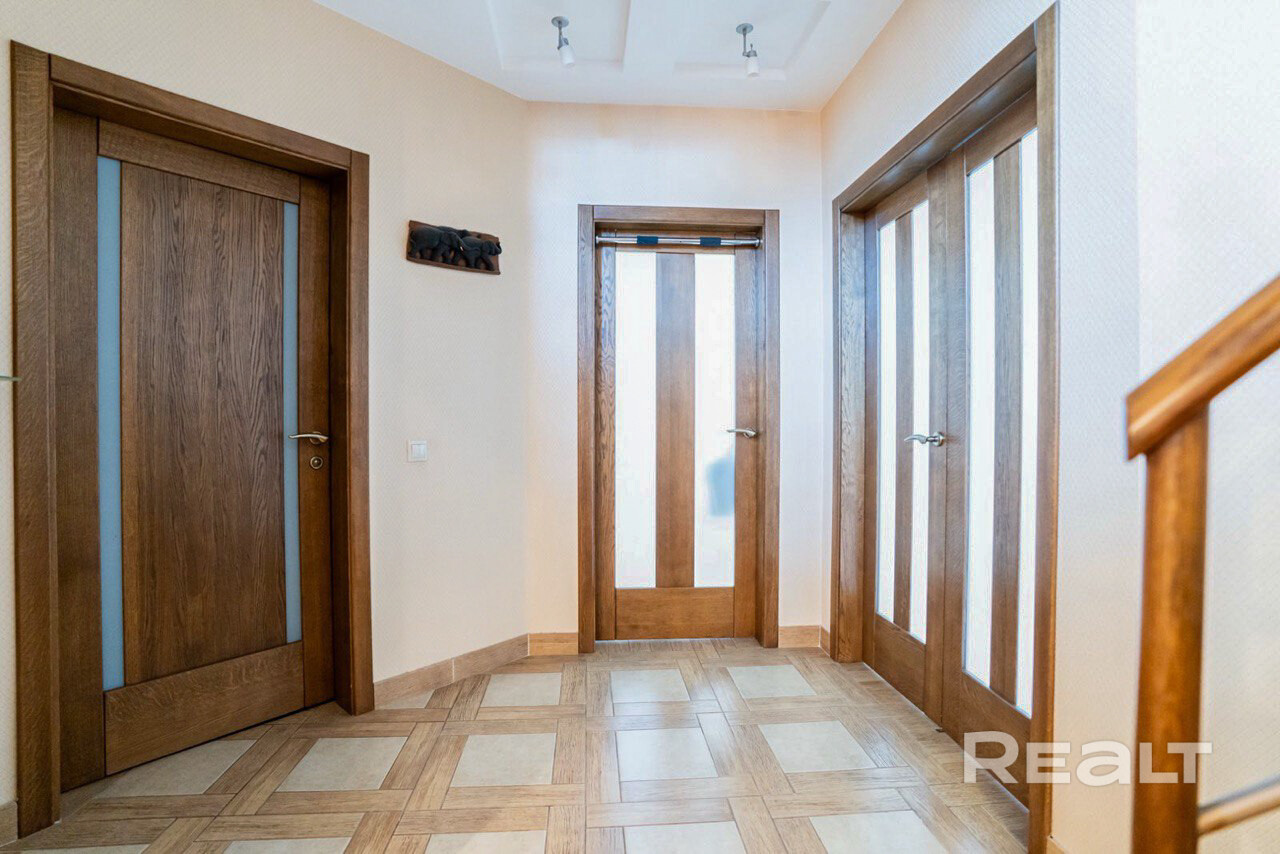 - Просторная, светлая квартира, с функциональной планировкой 5 жилых комнат: 3 спальни, гостиная и комната отдыха с естественным освещением в цокольном этаже, гардеробная и встроенные шкафы, подсобное помещение, сауна, гараж, общая площадь квартиры 211 м