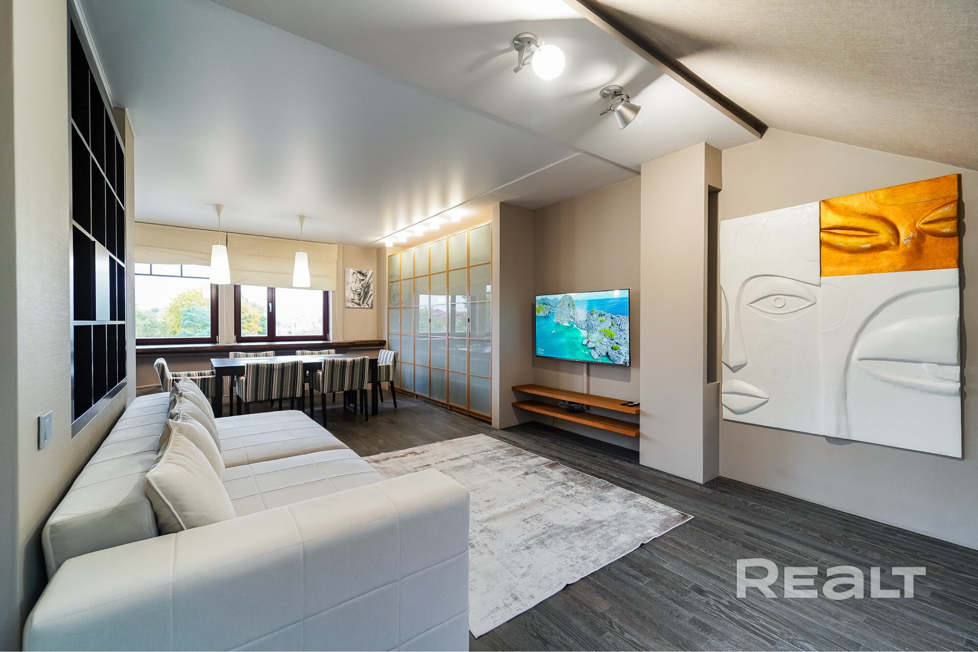 Описание Сдается шикарная двух комнатная квартира в самом центре города Минска на Площади победы. Рядом Парк Горького. 4 мин пешком до ст. м. Площадь победы. Две большие комнаты, в каждой комнате кондиционер и красивые мансардные окна! Пол с подогревом. На полу паркет. Есть и ванная с окном и душевая. Стирально-сушильная машина. В квартире есть все для комфортного проживания. В стоимость аренды входит ежемесячная уборка. В квартире запрещено курить, штраф 500 бел руб. Шумным компаниям не сдаем!