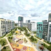Этаж девятый. Вид во двор. Закрытый двор с зоной барбекю и велобоксом.