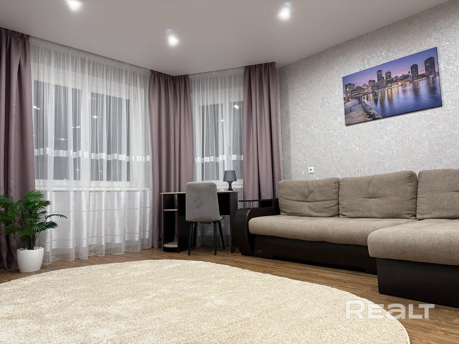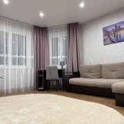 Сдаётся чистая и уютная однокомнатная квартира с большой площадью — по размеру как двухкомнатная. Современный интерьер, тёплая атмосфера, продуманное зонирование: отдельная спальная зона с полноценной кроватью и комфортная гостиная. Есть застеклённый балкон — удобно для утреннего кофе или небольшого рабочего места. Во дворе — просторная парковка, места хватает всегда. Рядом зелёная зона и парк для прогулок. До метро около 9 минут на автобусе.