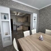 Современная, просторная и светлая квартира в новом доме. Первый заезд! Выполнен хороший ремонт, квартира полностью укомплектована мебелью и бытовой техникой, включая мелкую технику (утюг, пылесос). Удобная планировка, гардеробная комната, кладовая, кондиционер, бойлер, тёплый пол, панорамные окна. Общая площадь — 75,9 м² (жилая 43 м²). Квартира расположена на 13-м этаже 16-этажного дома.
