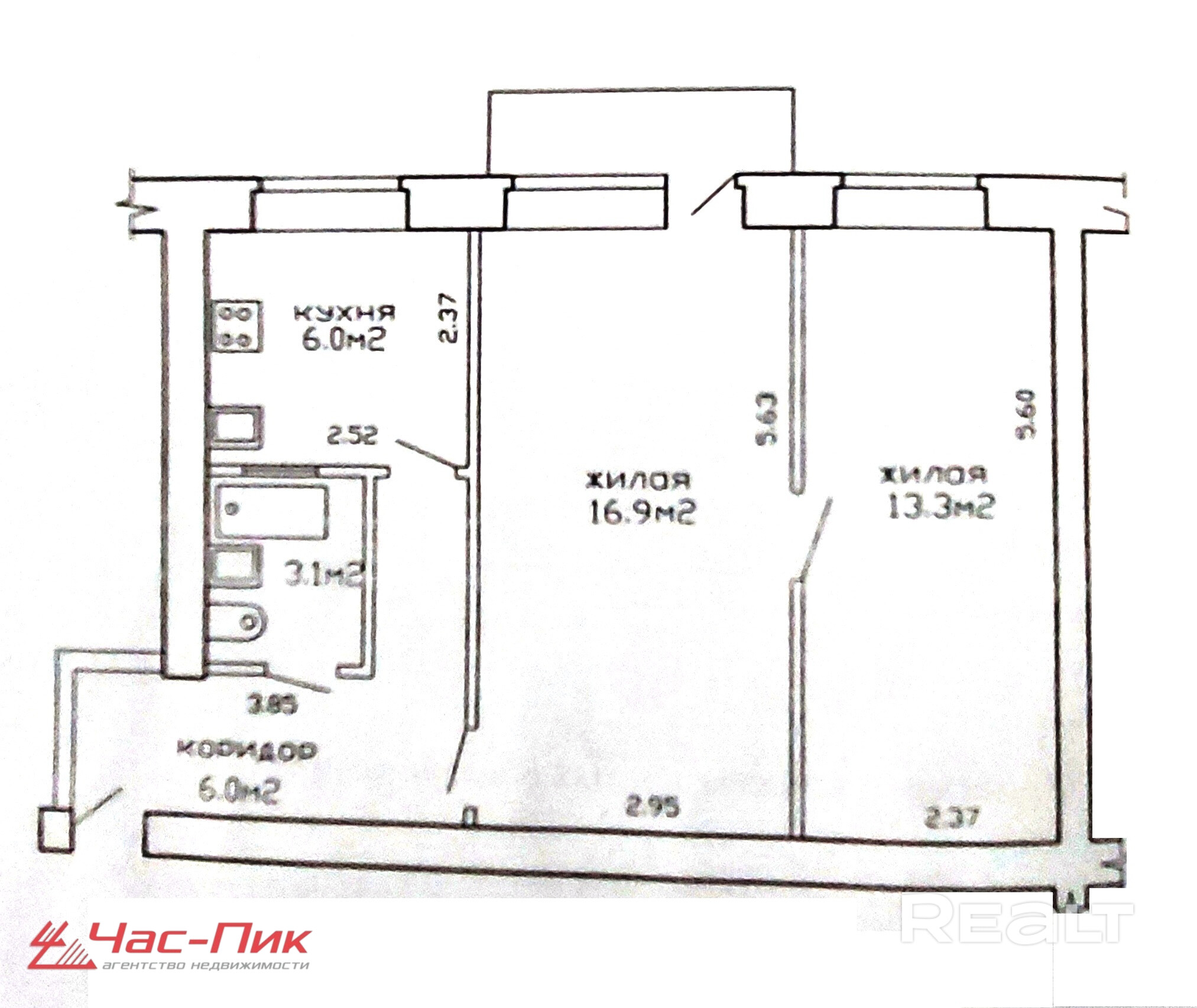 Дом находится в непосредственной близости от станции метро "Автозаводская". Общая площадь квартиры - 45 кв.м., жилая - 30,2 кв.м. (комнаты: 16,6 и 13,3 кв.м.), площадь кухни - 6,0 кв.м.