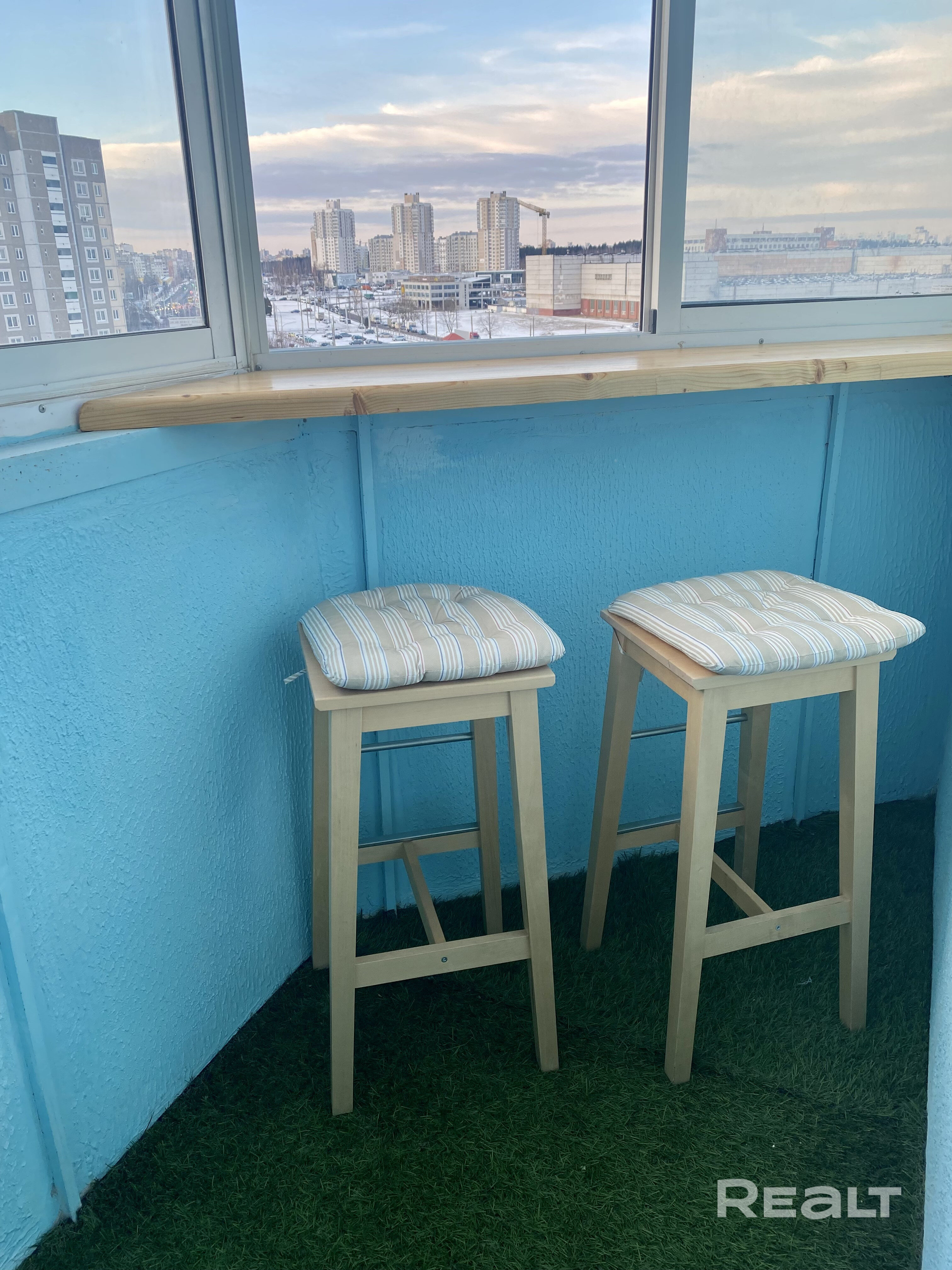 5. Застеклённая лоджия: оборудована барной зоной с высокими барными стульями для отдыха. Прекрасный вид на закат делает это место любимым для вечернего летнего отдыха.