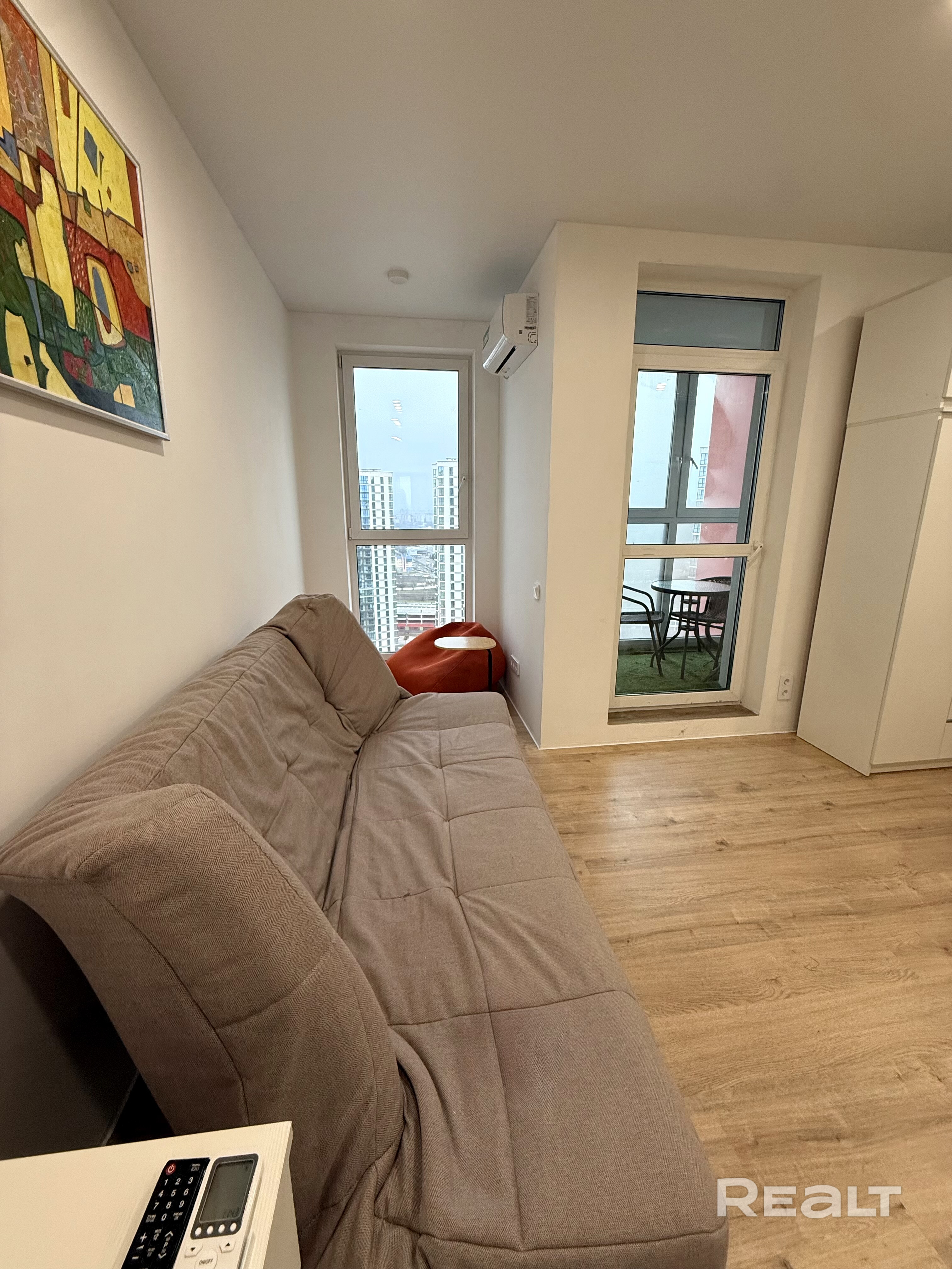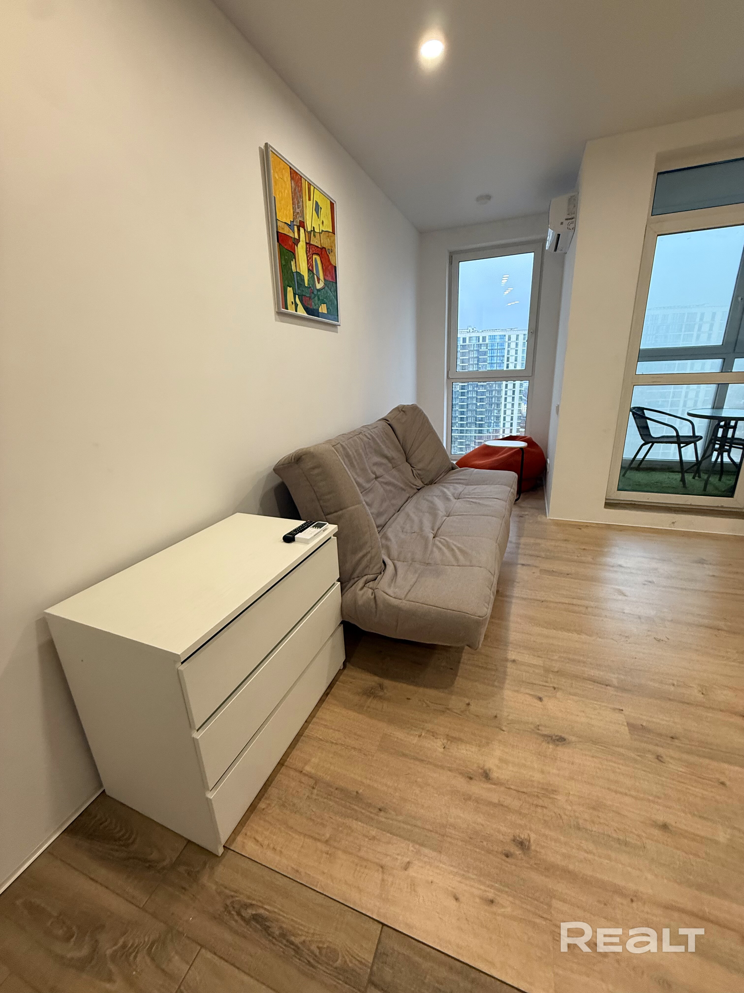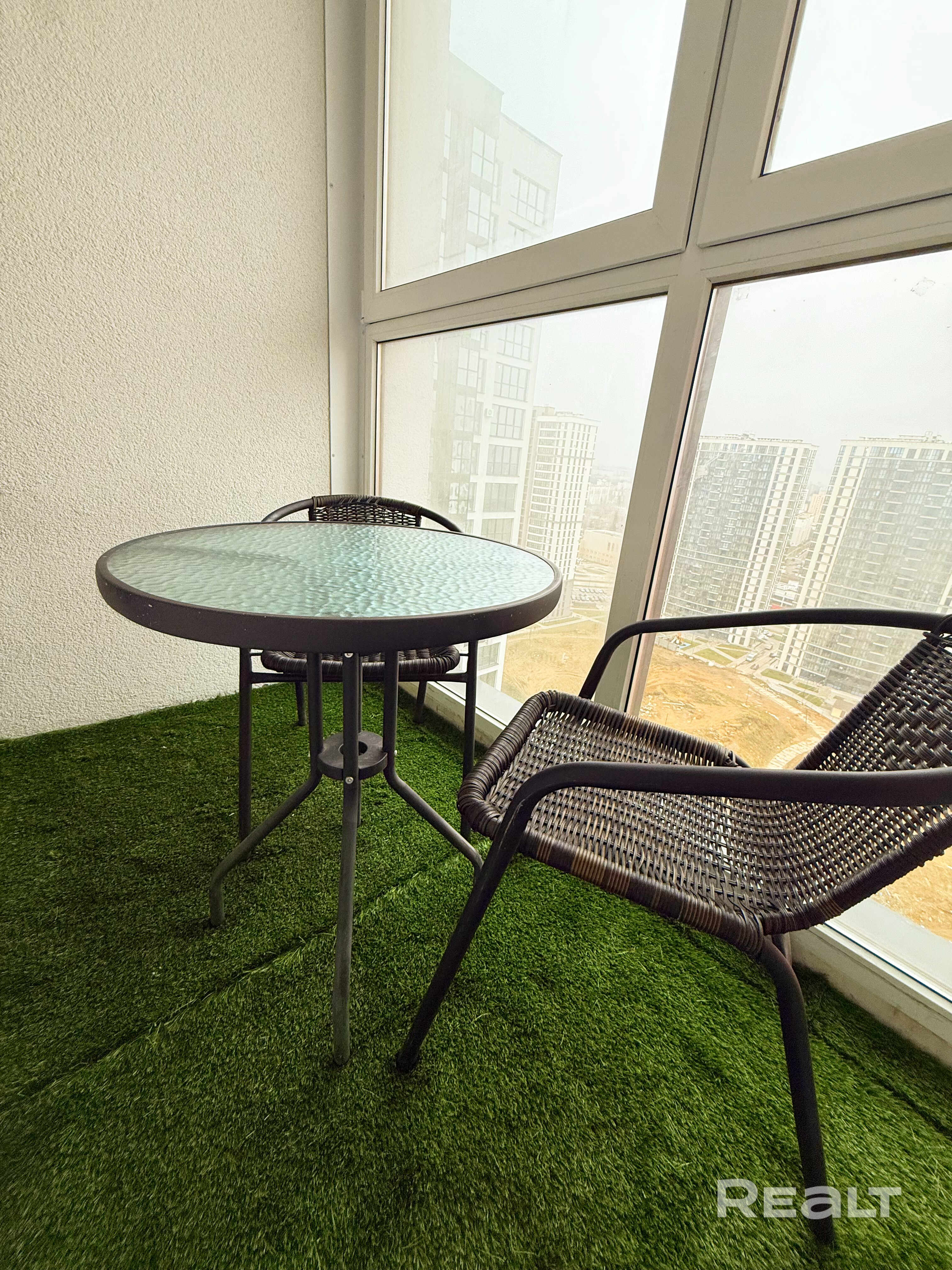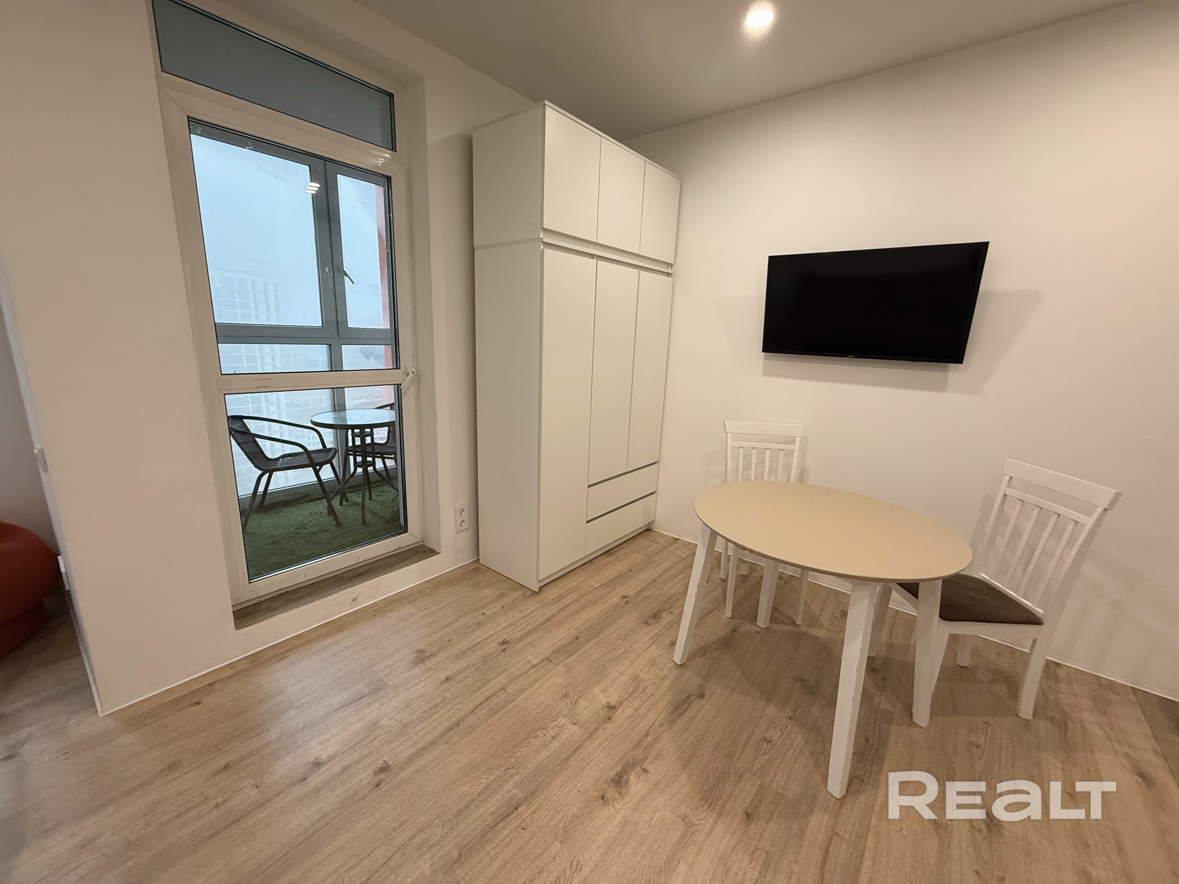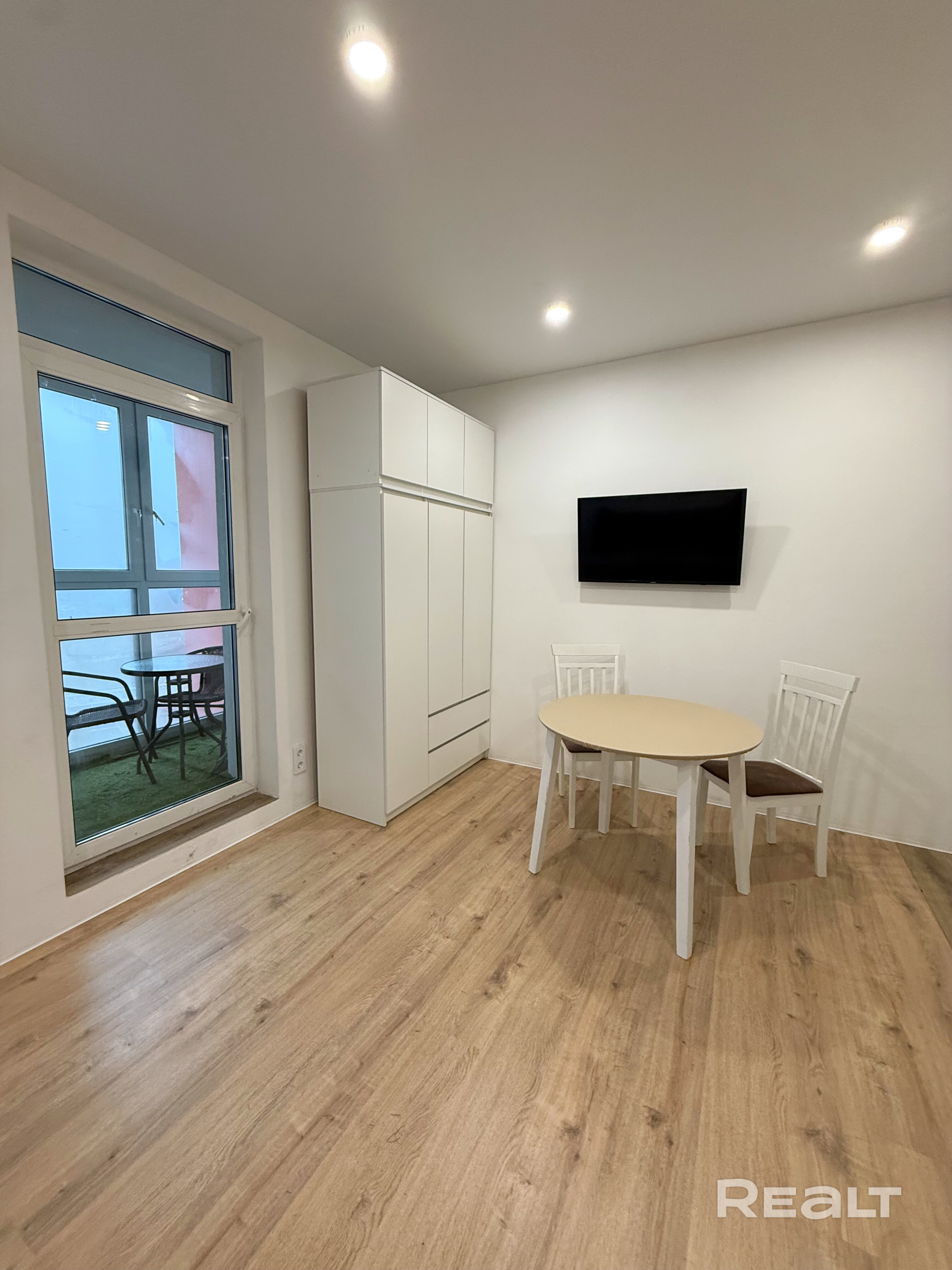 Разрешено проживание с животными Уютная светлая квартира с шумоизоляцией имеет соседей только с одной стороны, оснащена всем необходимым для комфортного проживания. Ремонт делался для себя. Из окон в пол (ПВХ) открывается прекрасный вид на город, а не на соседний дом. Студия оснащена абсолютно всем: как новой современной базовой мебелью, так и кондиционером, водонагревателем, посудомоечной и стиральной машинами, индукционной плитой, роботом-пылесосом, балконом с садовой мебелью, блэкаут шторы
