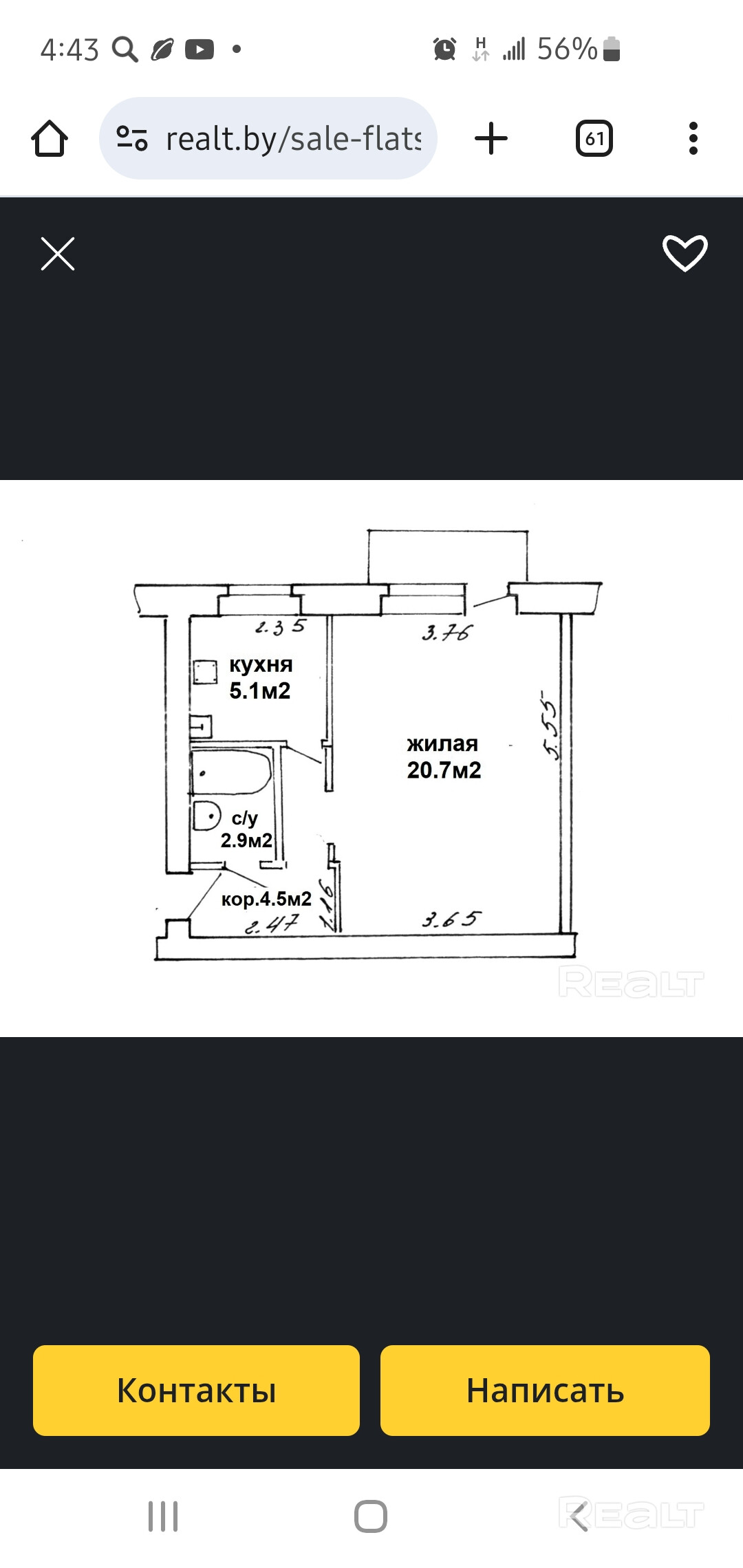 Снять 1-комнатную квартиру, г. Минск, ул. Калинина, 13