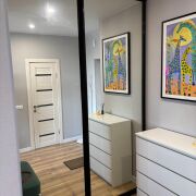 Много мест хранения: два больших шкафа, в одном зеркальные двери от пола до потолка и два вместительных комода.