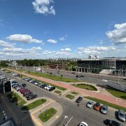 Большая бесплатная парковка, есть возможность арендовать место на закрытой парковке под шлагбаумом и подземном паркинге.