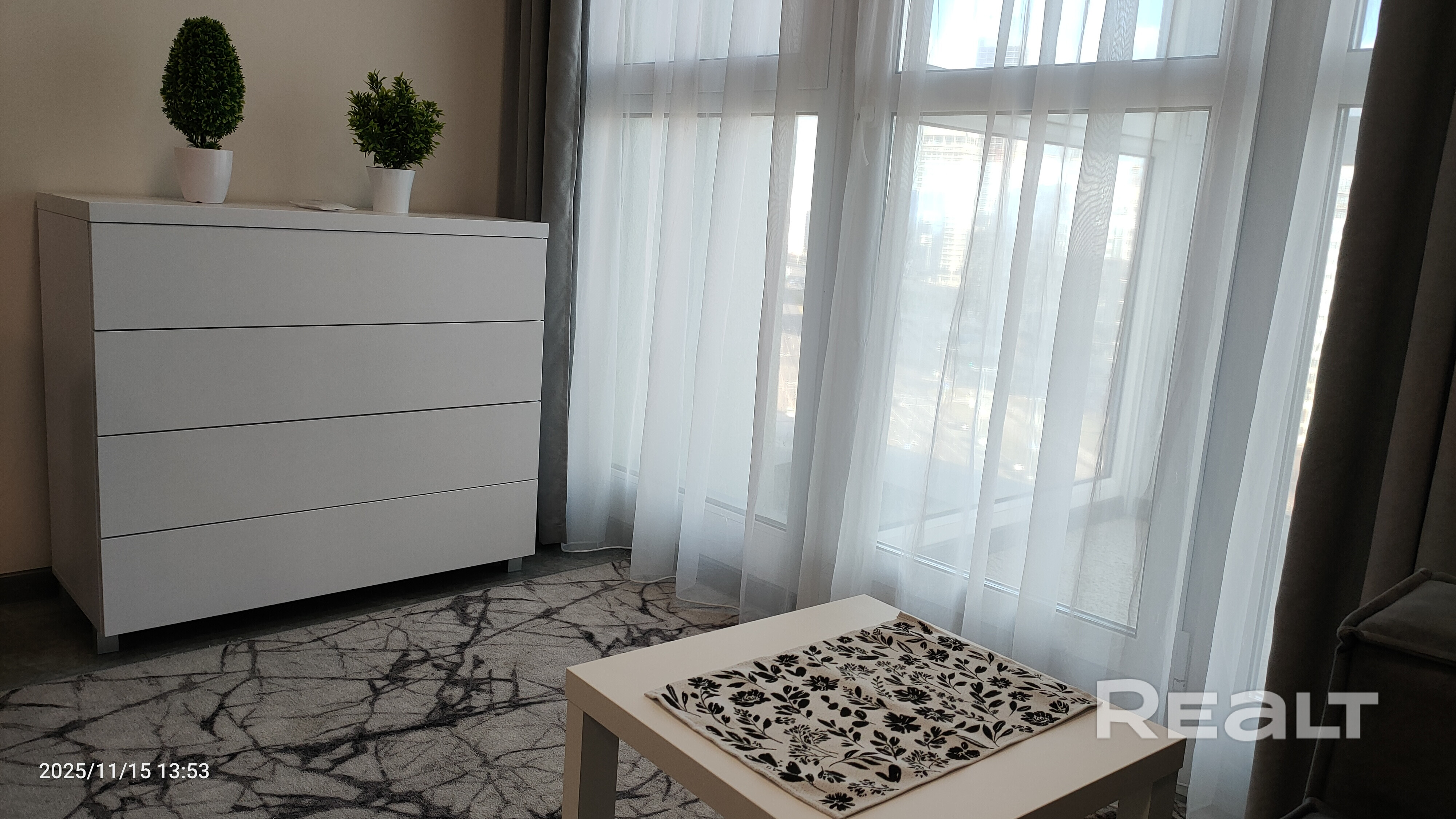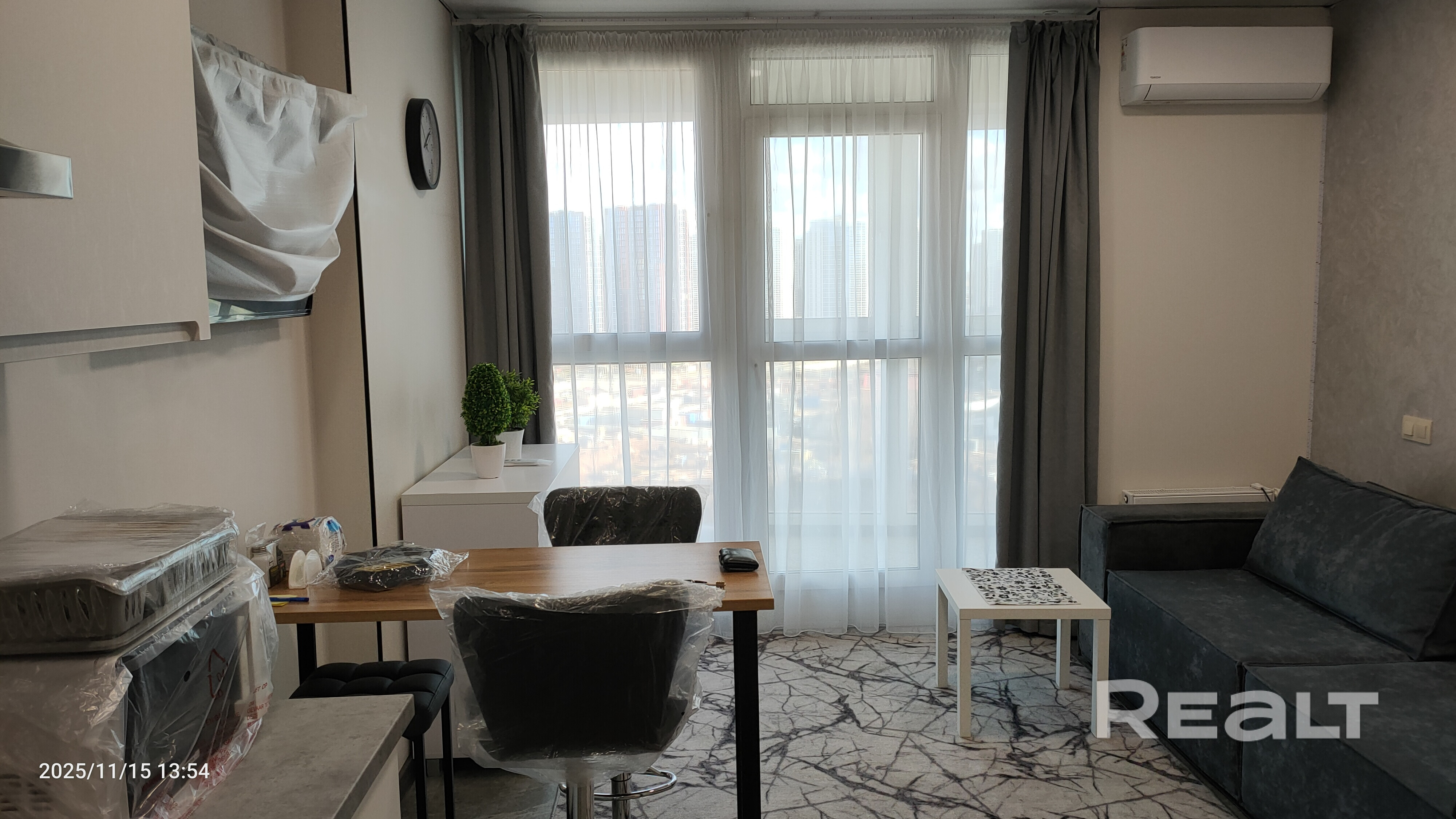 Сдается квартира - студия в современном жилом комплексе Минск Мир в шаговой доступности от станции метро Аэродромная и крупного торгового центра Авиа Молл. Отличный ремонт со всем необходимым, включая мебель и бытовую технику для комфортного проживания. В доме три лифта, один из них панорамный, отличный вид на проспект Мира.