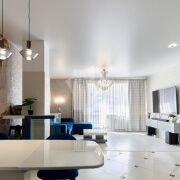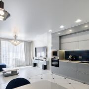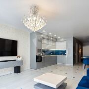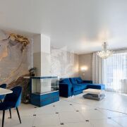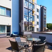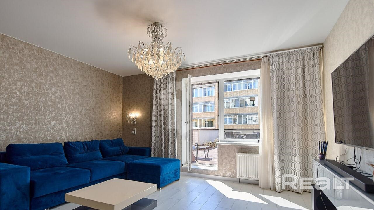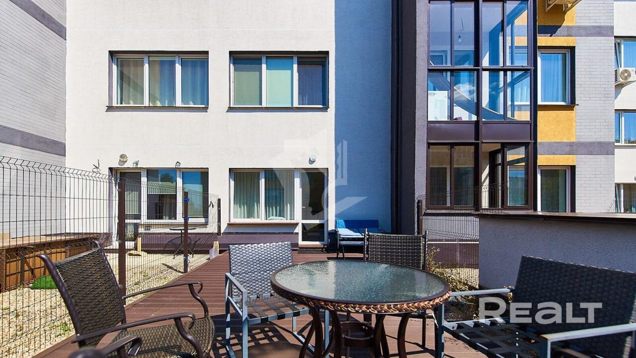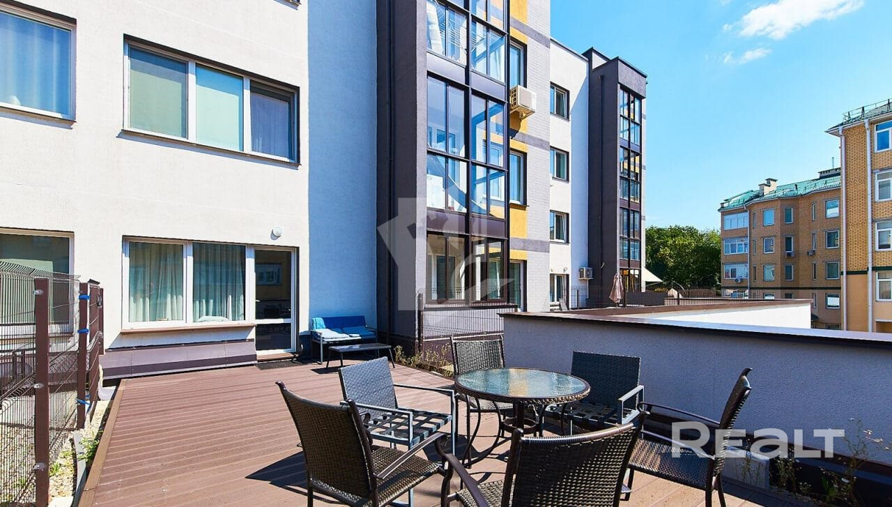 Сдается двухкомнатная квартира с террасой площадью по СНБ: 78,9 кв м. Выполнен современный ремонт, высокие потолки, комбинированное напольное покрытие, просторная, жилая комната, совмещенная с кухней, зона для отдыха и работы, спальня, предусмотрены места для хранения, качественная электрика и сантехника, дополнительная подсветка комнат, оборудованная кухня, батареи с терморегуляторами, светлый и просторный балкон, санузел раздельный, окна ПВХ, металлическая входная дверь.