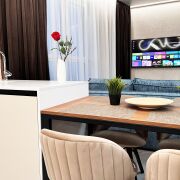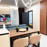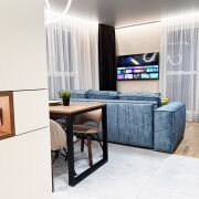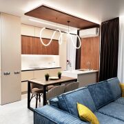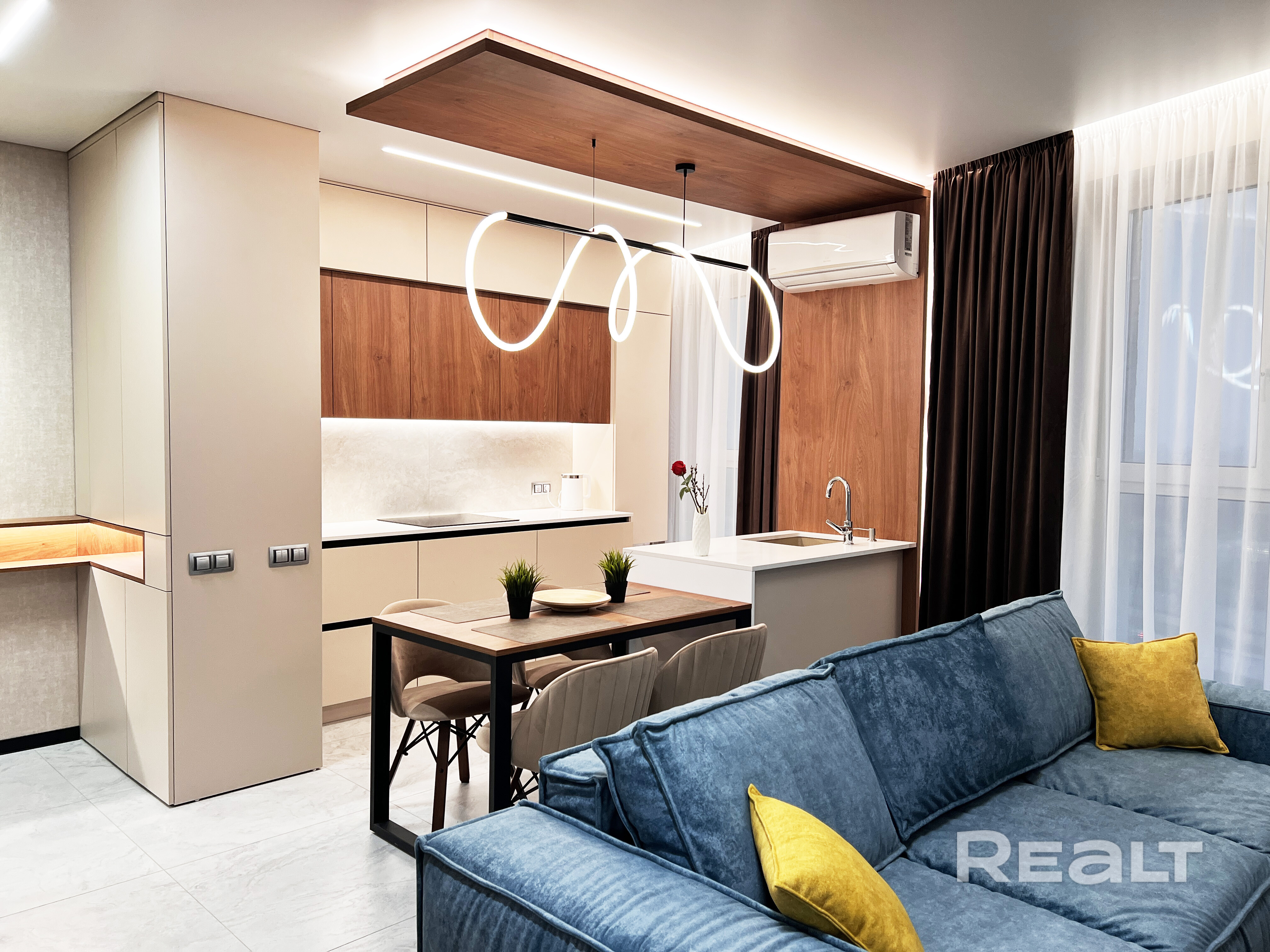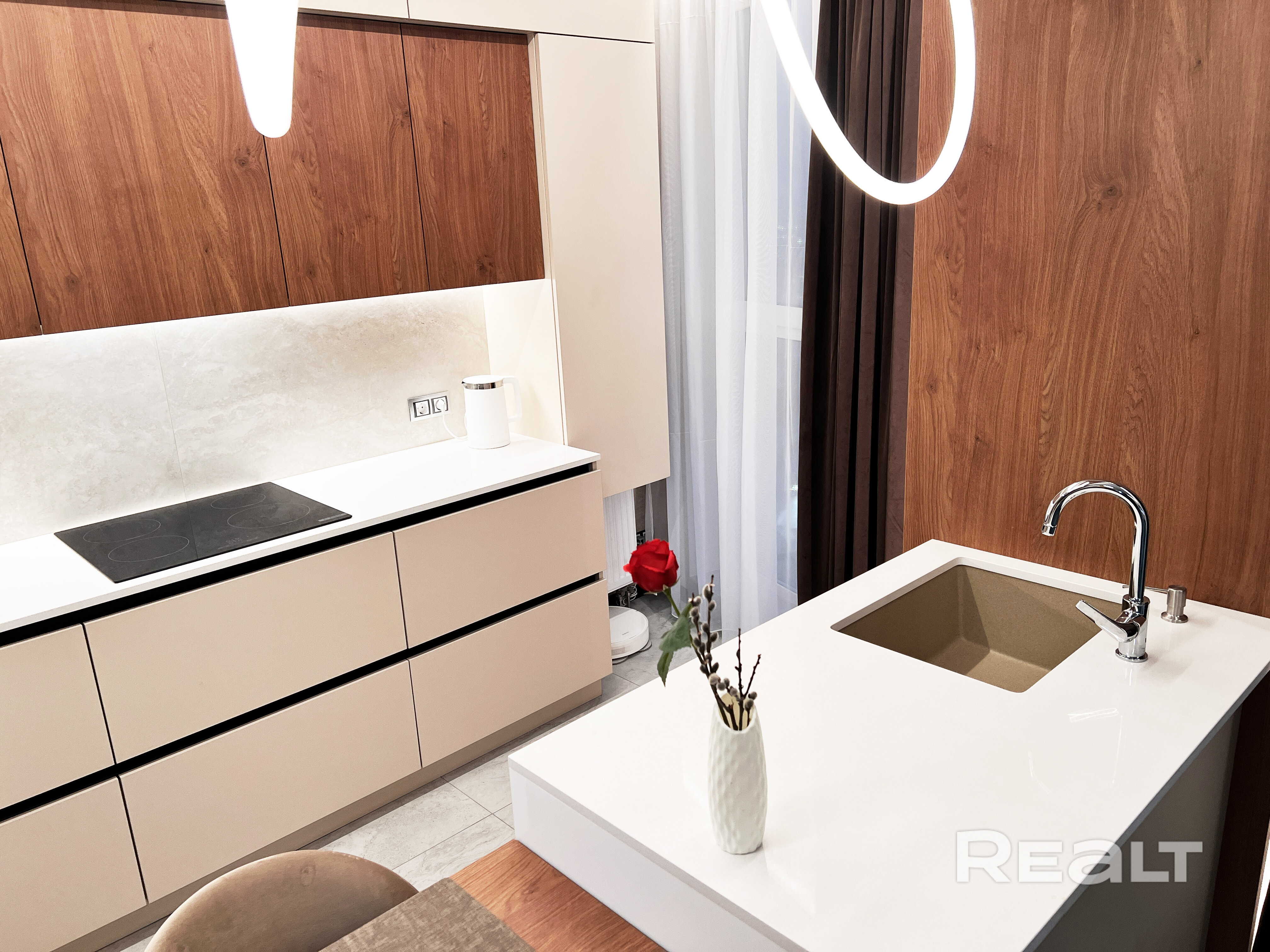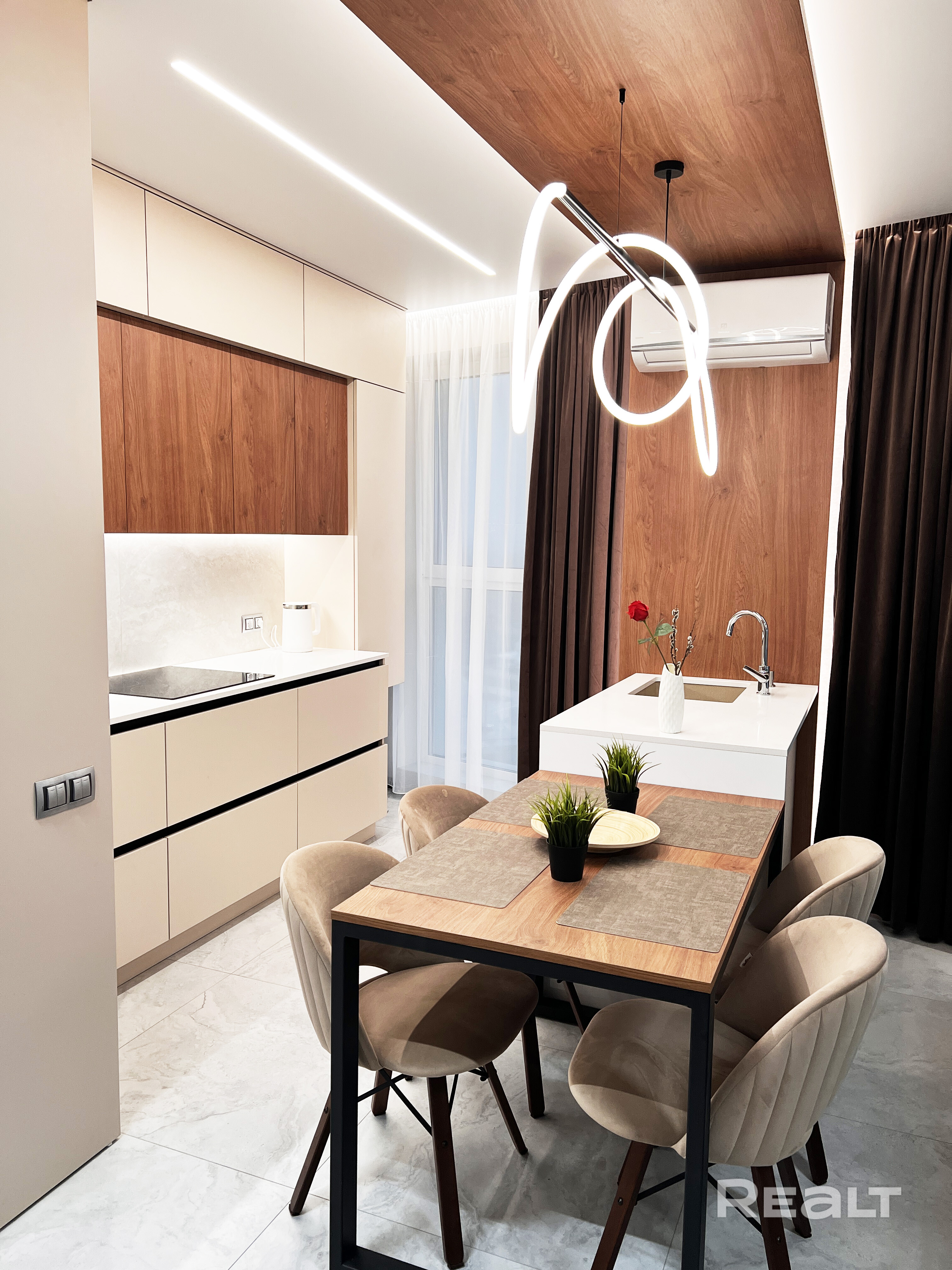 Светлая дизайнерская квартира на длительный срок - 2 комнаты, 45 м2 Все абсолютно новое, в квартире никто никогда не жил, сантехника Grohe Hansgrohe, дорогая мебель и отделка, натуральная дубовая доска, испанская плитка, бельгийские обои, электрика Schneider, Стир. машина, микроволн. печь, плита, духовка всё Bosch, бойлер, кондиционер Electrolux, холодильник Liebherr, вытяжка Elica, 2 телевизора LG Samsung со smart TV, интернет, видеодомофон, видео наблюдение, защита от протечек, жилой балкон.