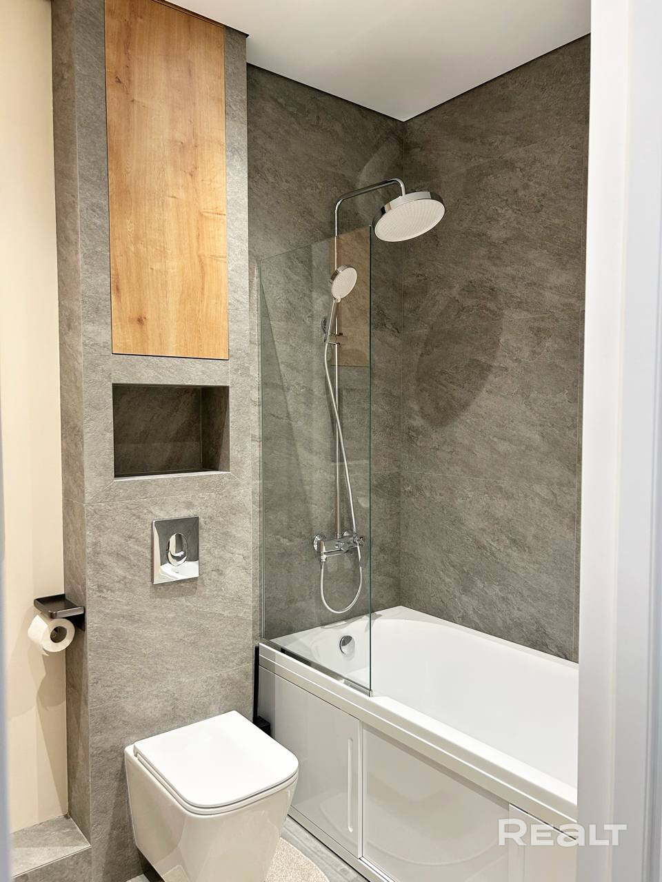 Дом новый, двор закрытый, есть велогараж, лапомойка. Через дорогу есть большая парковка, где всегда найдется место для машины и большой фитнес центр в шаговой доступности. До остановки общественного транспорта пару минут пешком. Сам район очень удобный, рядом магазины, кафе, прогулочные зоны, всё под рукой.