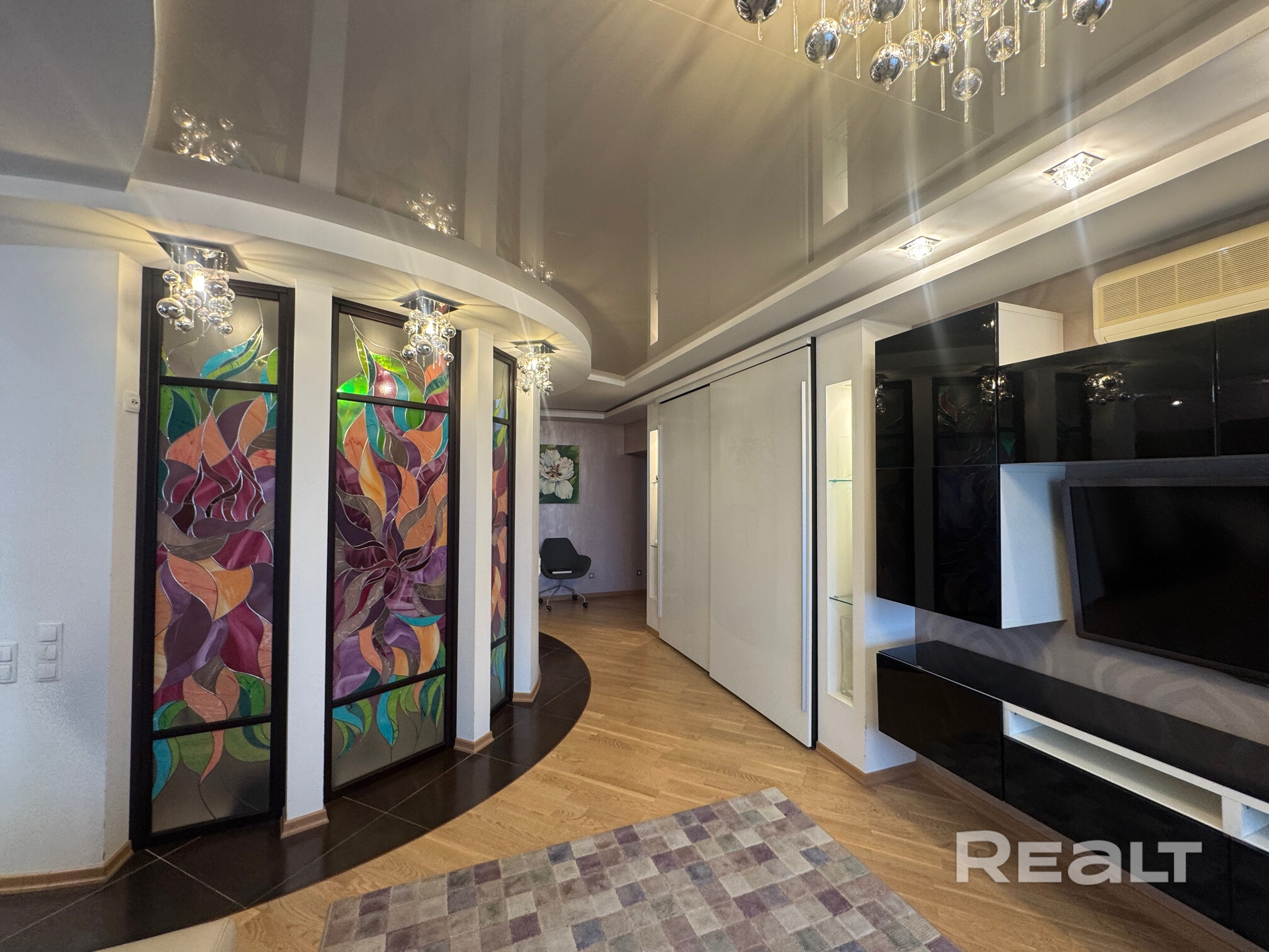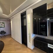 В квартире: Духовой шкаф, индукционная варочная поверхность, вытяжка, СВЧ,чайник,  посудомоечная машина, холодильник, фильтр воды 7 ступеней, измельчитель отходов, кондиционер, телевизор, утюг, гладильная доска, пылесос, теплые полы, сейф, видеодомофон. Тамбур с контролем доступа. Свободная парковка. В квартире подведенны два провайдера.