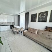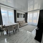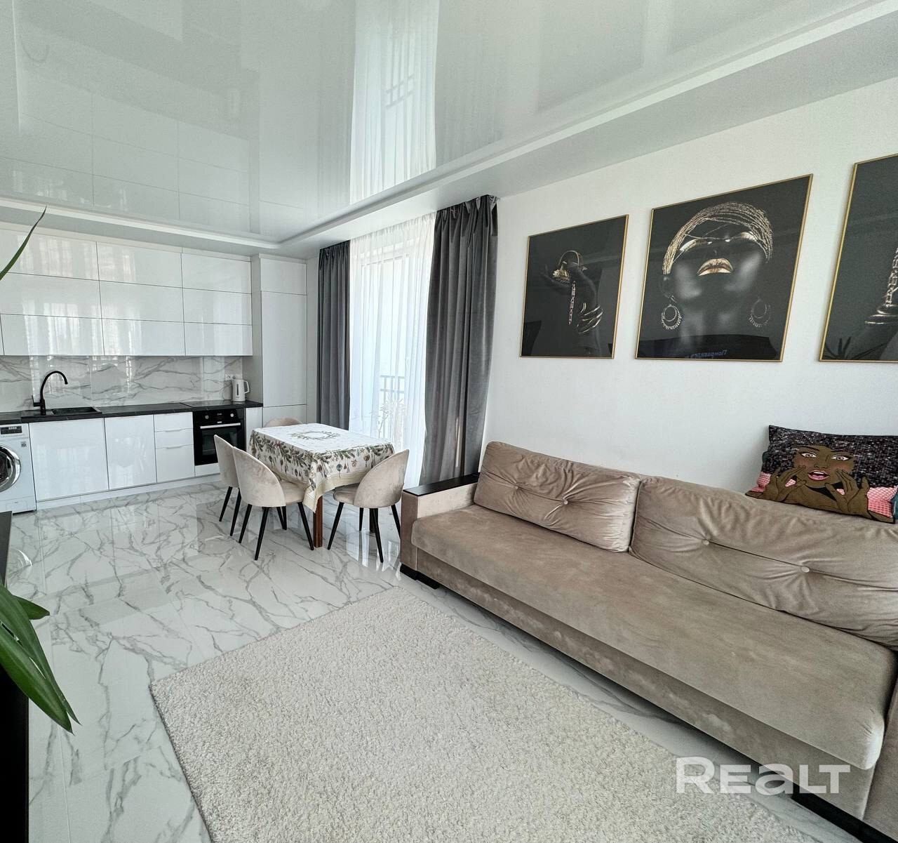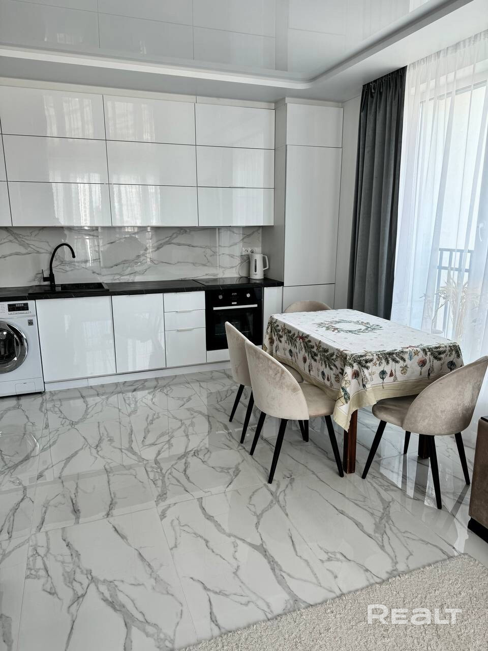 1-комнатная квартира-студия, которая находится на 12-м этаже по адресу: ул. Лученка, 11. Дом 2021 года постройки. Общая площадь квартиры 60,1 м2. Бытовая техника: индукционная панель, микроволновая печь, духовой шкаф, вытяжка, стиральная машина, холодильник, утюг, пылесос, телевизор. Сан. узел совмещённый. Интернет подключён. Так же есть сушилка для белья.