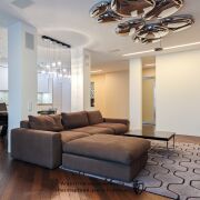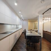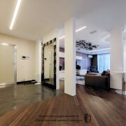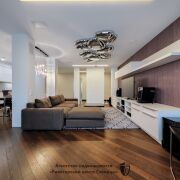 Ремонт выполнен из дорогих и качественных материалов: на полу паркетная доска, установлены внутрипольные конвекторы отопления, а также система приточной вентиляции и кондиционеры.