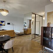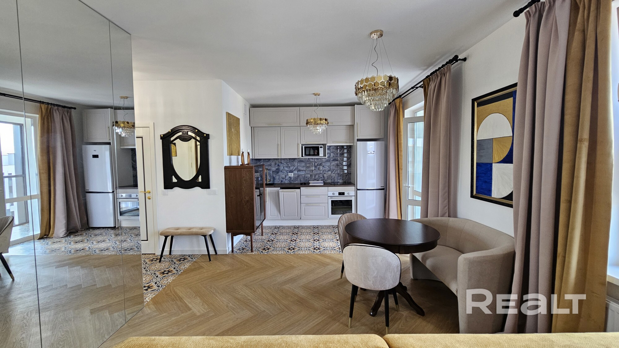 1-комнатная квартира-студия с дизайнерским ремонтом, которая находится на 8-м этаже по адресу: ул. Нововиленская, 53. Дом 2024 года постройки. Общая площадь 41 м2 (без балкона)