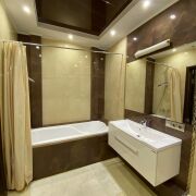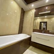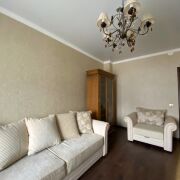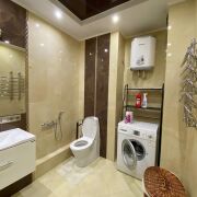 Квартира укомплектована всем необходимым для комфортного проживания: мебелью, кухня со встроенной немецкой бытовой техникой (вар.панель, посудомоечная машина, стиральная машина, духовой шкаф, холодильник, свч-печь). Большая уборная комната с ванной.