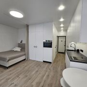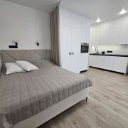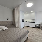 Сдается стильная новая квартира-студия по адресу ул.Николы Теслы 14. Дом «Ереван» в квартале «Евразия» в 5 минутах ходьбы от ст.м. «Аэродромная» и в 10 минутах от ст.м. «Ковальская Слобода». В доме установлены два бесшумных лифта OTIS, один из которых панорамный. Входы в подъезд сквозные, находятся на уровне земли. Дизайнерское лобби: зона отдыха, туалетная комната. Видеонаблюдение по всей территории и внутри дома. Во дворе располагаются современные спортивные и детские площадки, велопарковки. По периметру квартала много парковочных мест для машин.15 этаж 19 этажного каркасно-блочного дома. Ремонт делался для себя, не для аренды, из качественных материалов. Квартира полностью укомплектована всей необходимой мебелью и техникой для комфортного проживания: посудомоечная машина, стиральная машина, духовой шкаф, видеодомофон, телевизор, полноценное спальное место. Из окна открывается прекрасный вид. Рядом есть продуктовые магазины, отличные кафешки. В шаговой доступности: один из крупнейших торгово-развлекательный центр «Avia Mall», магазин «Санта», салоны красоты, фитнес-центр, йога студия, аптеки, сервисные и бизнес-центры. Удобный выезд на МКАД и транспортное сообщение со всеми районами столицы.