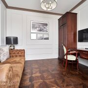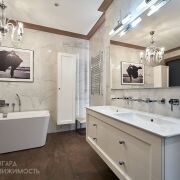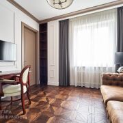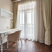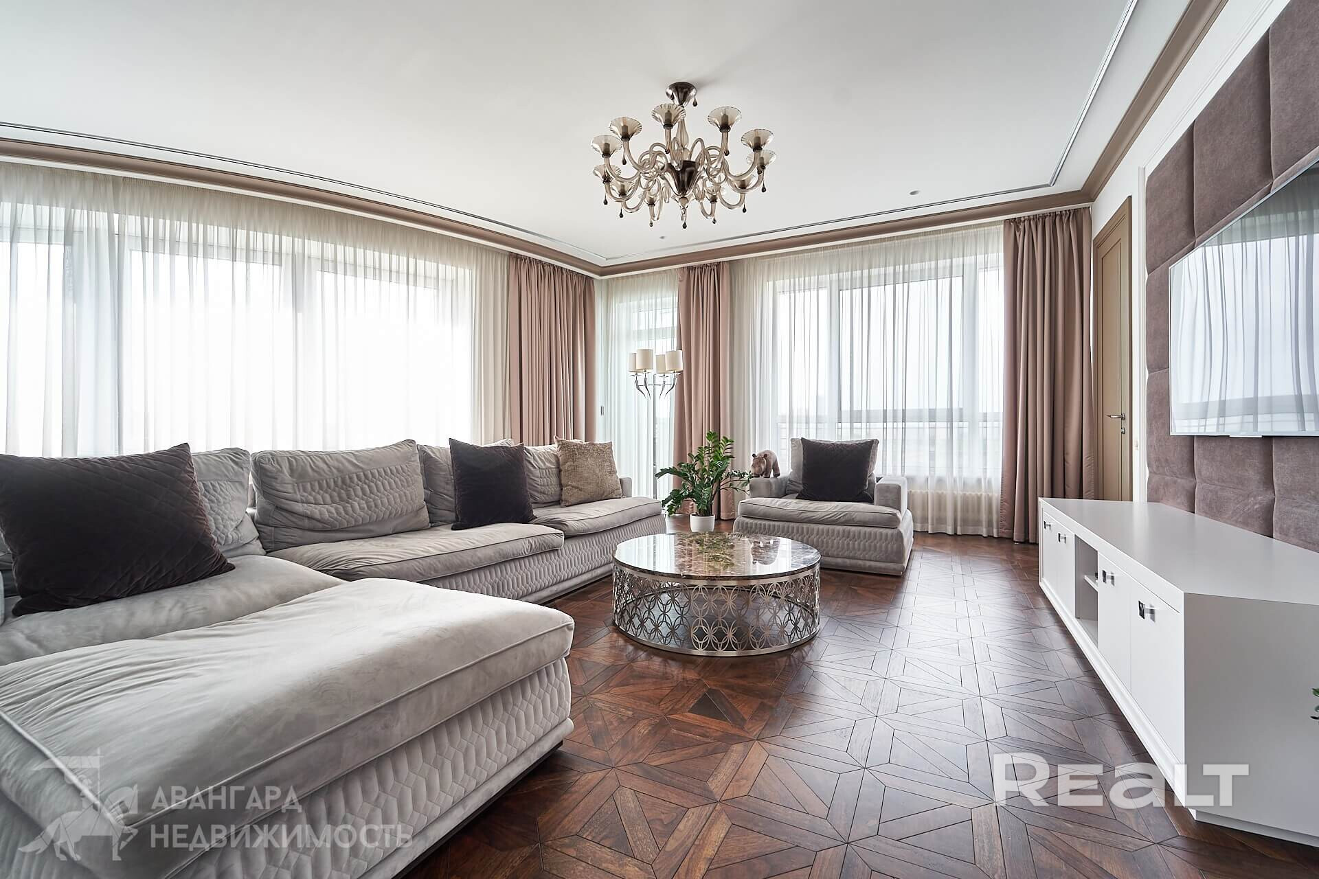 Пространство организовано так, что в квартире: три отдельные жилые комнаты, мастер-спальня с гардеробной и просторной ванной комнатой, кабинет, три сан.узла, гостиная с организованной обеденной зоной, две видовые лоджии с прекрасным видом на город, просторная и функциональная кухня с бытовой техникой от ведущих производителей. Окна квартиры выходят на обе стороны дома, что позволяет в течении всего дня солнечному свету попадать в квартиру.