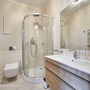 В доме закрытая территория, видеонаблюдение по всему периметру дома, консьерж, так же предусмотрены два парковочных места. Развитая инфраструктура, в шаговой доступности рестораны, магазины, медицинские и спортивно-оздоровительные центры, школы и сады.