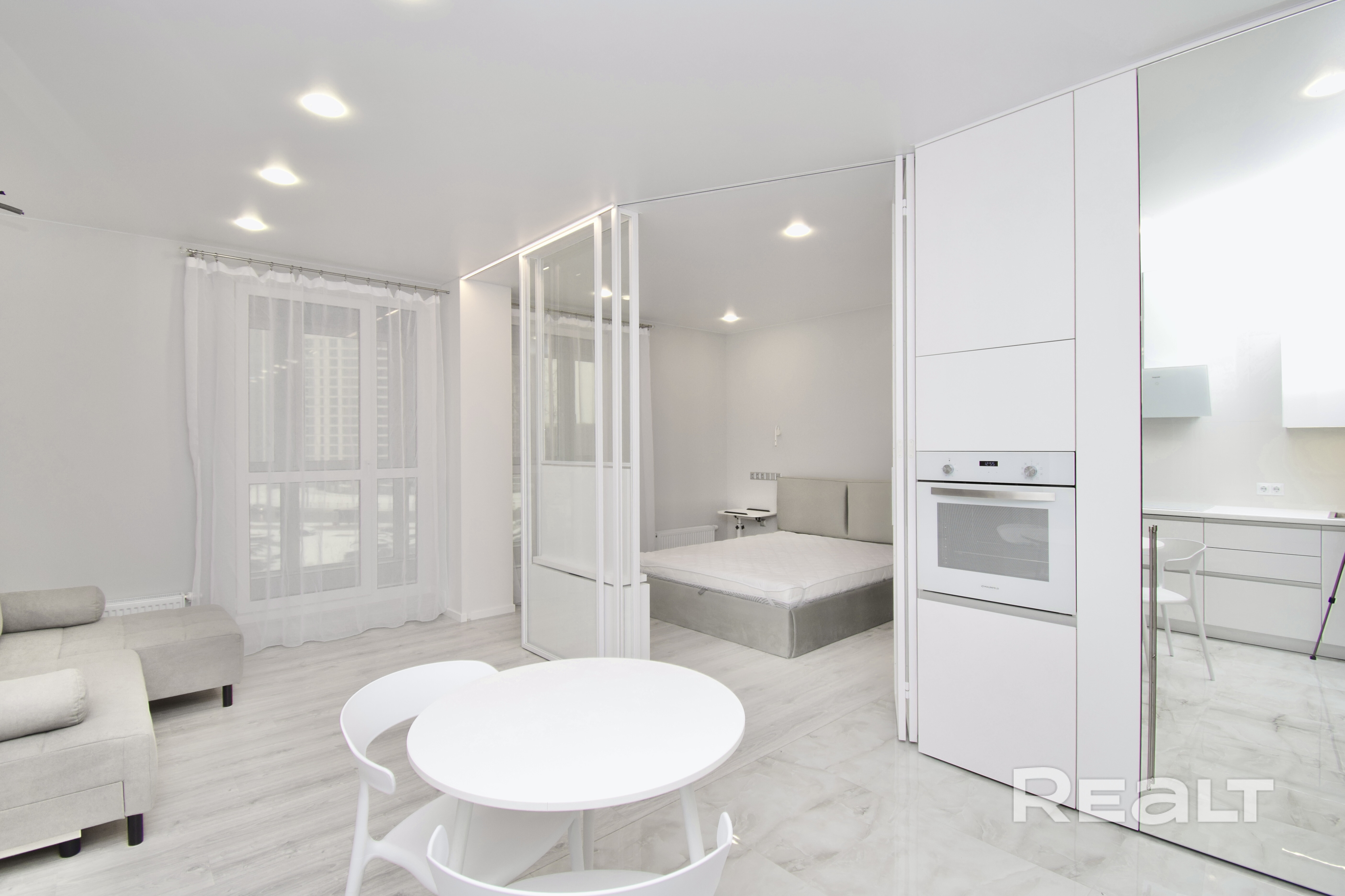 Сдаётся дизайнерская квартира 46 м² в «Минск-Мир» (ул. Аэродромная 18). Первое заселение после дорогого ремонта! Панорамный вид с балкона, авторский интерьер, современное освещение. Планировка: изолированная спальня, кухня-гостиная, гардеробная. Вся новая техника (посудомоечная, стиральная машины). 10 минут до метро. Условия: долгосрочно, официальный договор. Без животных, не студентам. К/пл. ~50 руб. Оплата: месяц + залог. Фото полностью соответствуют. Звоните!