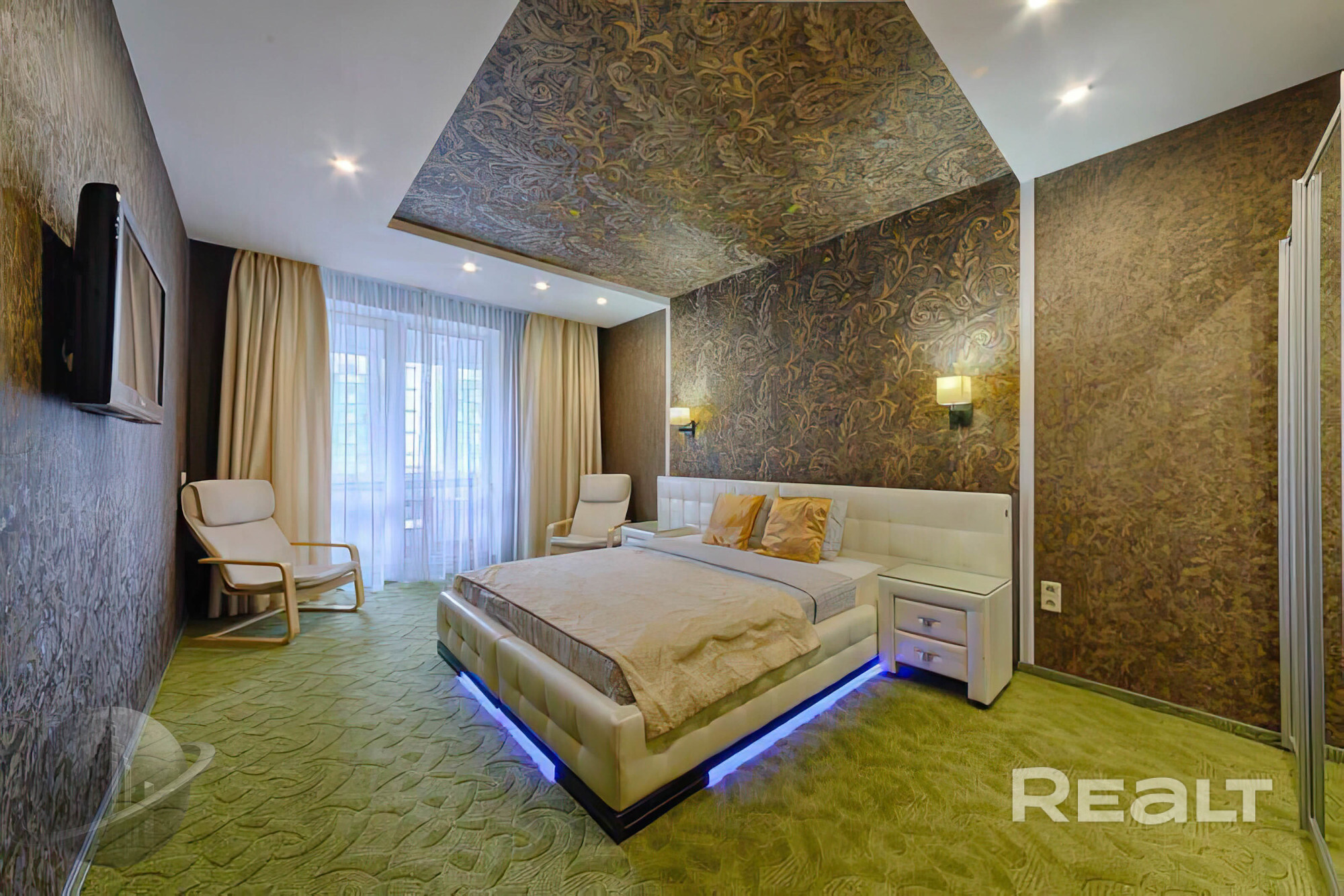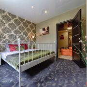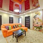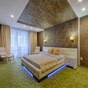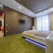 В квартире есть всё необходимое для уютной жизни: мебель, посуда и техника. Здесь две спальни, ванная комната с джакузи, отдельная кухня и гостиная.