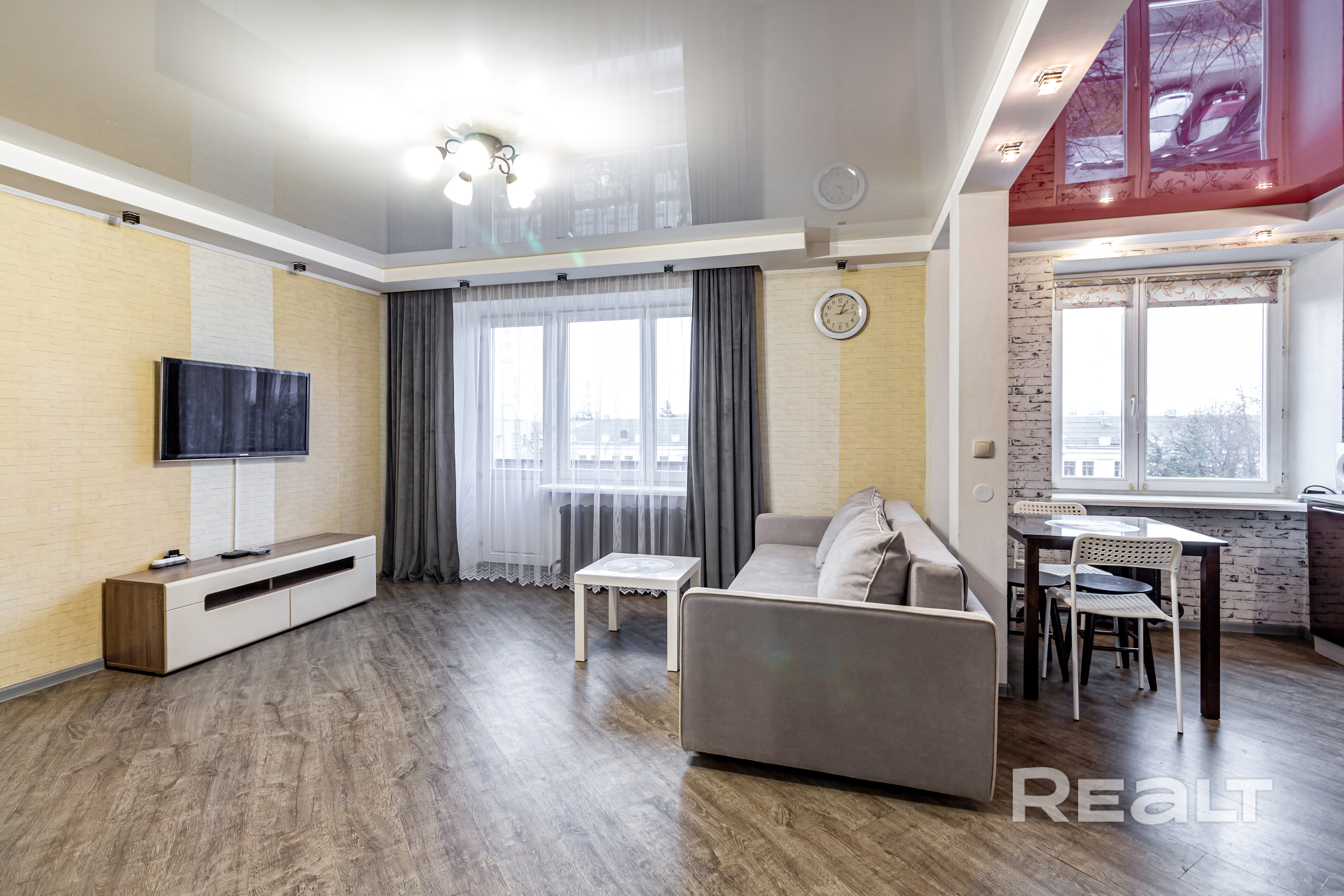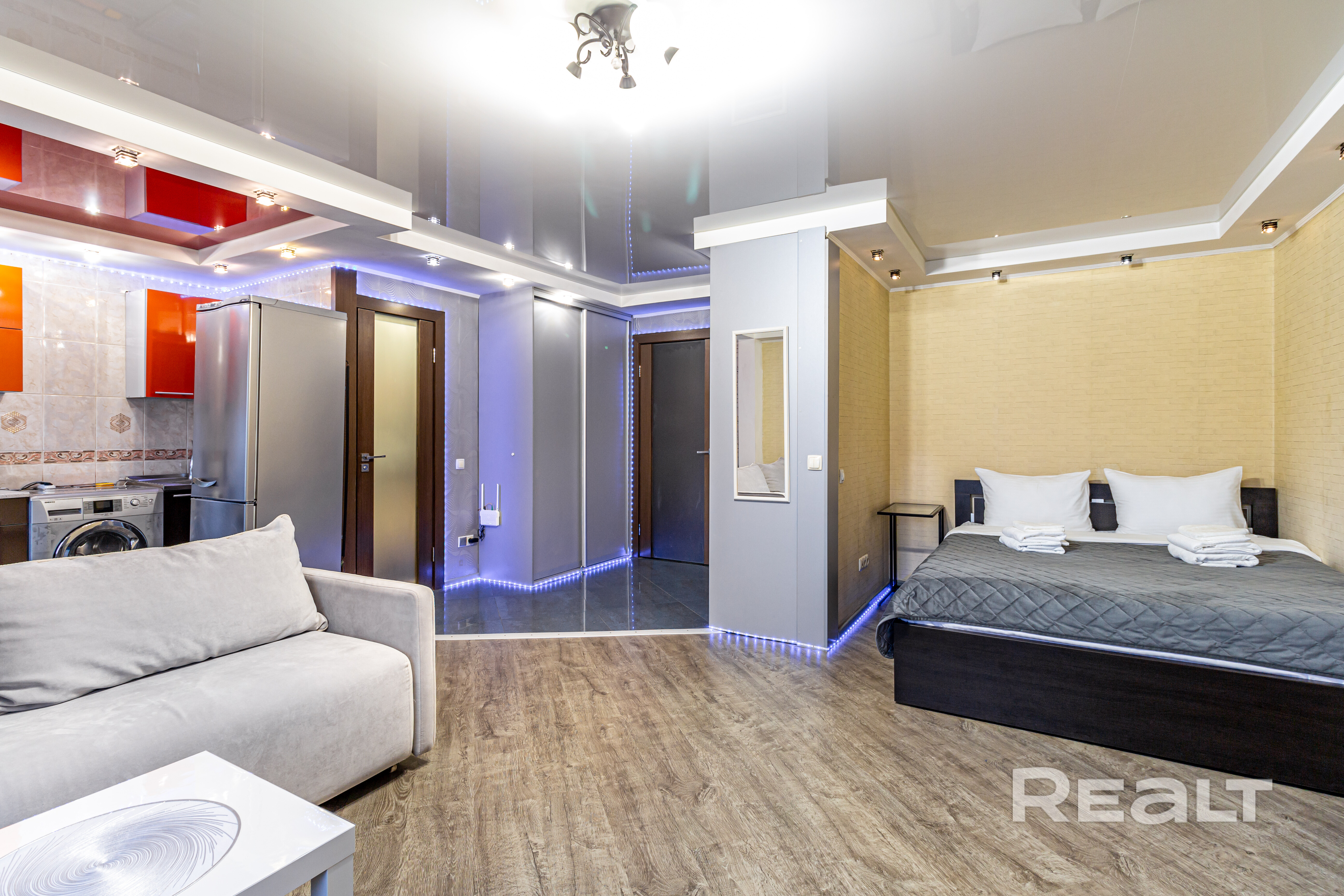 Сдаётся современная уютная квартира-студия с дизайнерским евроремонтом, в шаговой доступности (4 мин.) возле метро ст. "Московская" и главного проспекта Независимости в г. Минске. Вся инфраструктура, включая магазины, банки, транспорт в шаговой доступности. В квартире есть всё полностью для комфортного проживания. Гармоничный современный интерьер. Сдаётся без животных, в квартире не курят.