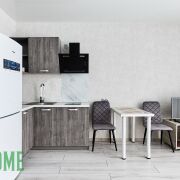 В квартире: мебель, варочная панель, вытяжка, холодильник, телевизор.