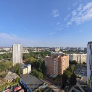 Современная и уютная квартира общей площадью 43 м2 расположена в доме на 18-ом этаже из 19-ти, из окон квартиры открывается далёкий вид на город.