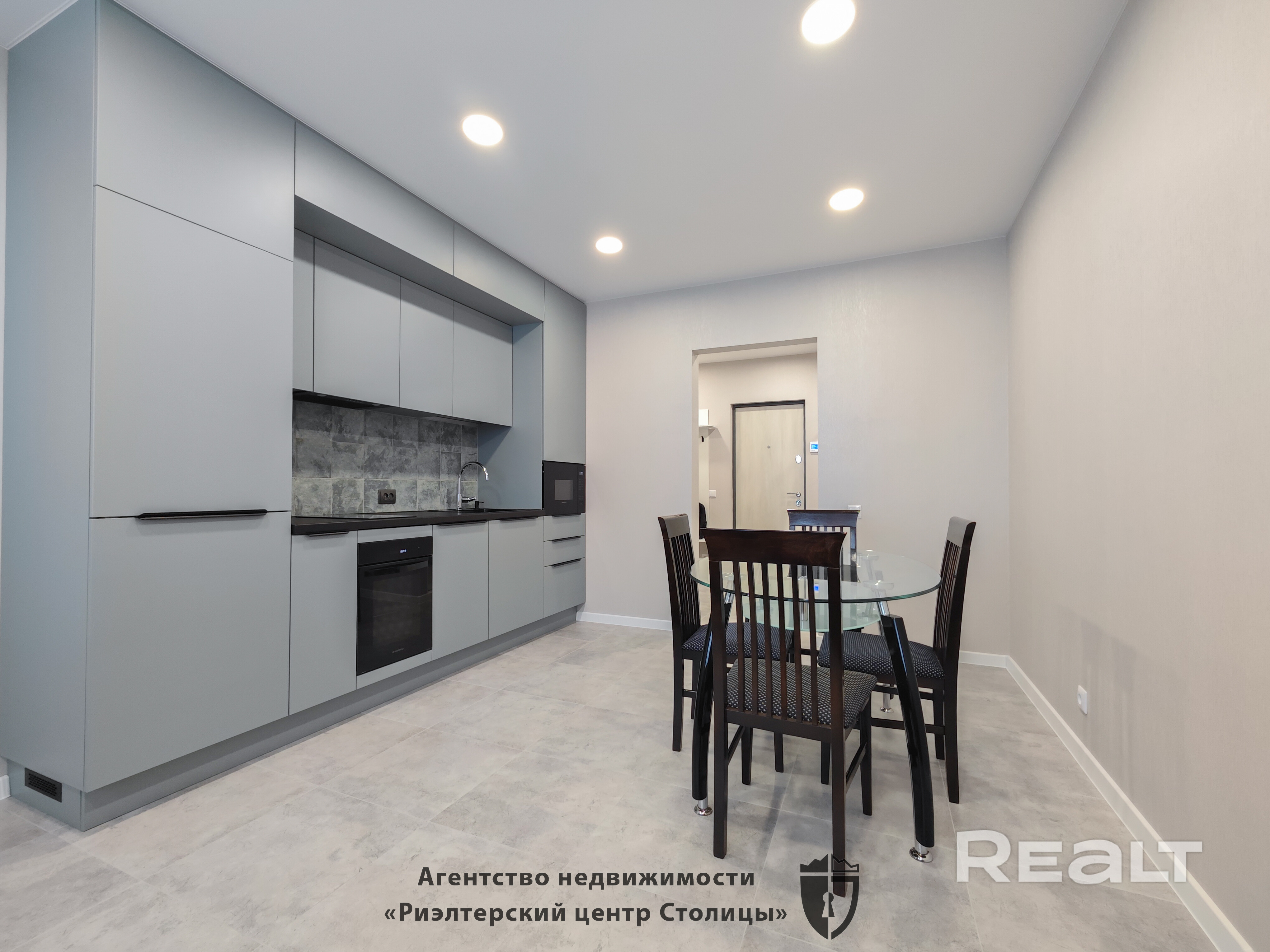 Евродвушка возле станции метро «Пролетарская», в жилом комплексе "Антоновский квартал" по адресу: Минск, улица Рыбалко, 13.