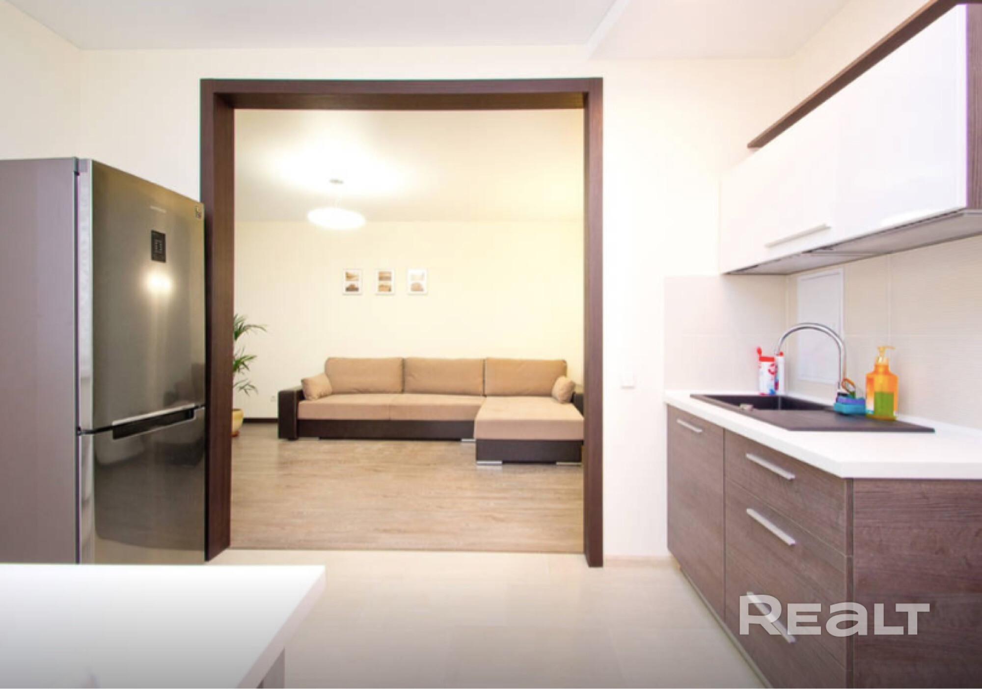 Аккуратная , просторная, добротно сделанная для себя квартира со всем необходимым ( пылесосом , микроволновкой , гладильной доской и т.п. )?Современный каркасно-блочный дом, уютный двор со шлагбаумом , приятная соседка на площадке . Невысокая коммуналка. Большое спальное место на двоих влюбленных 😊