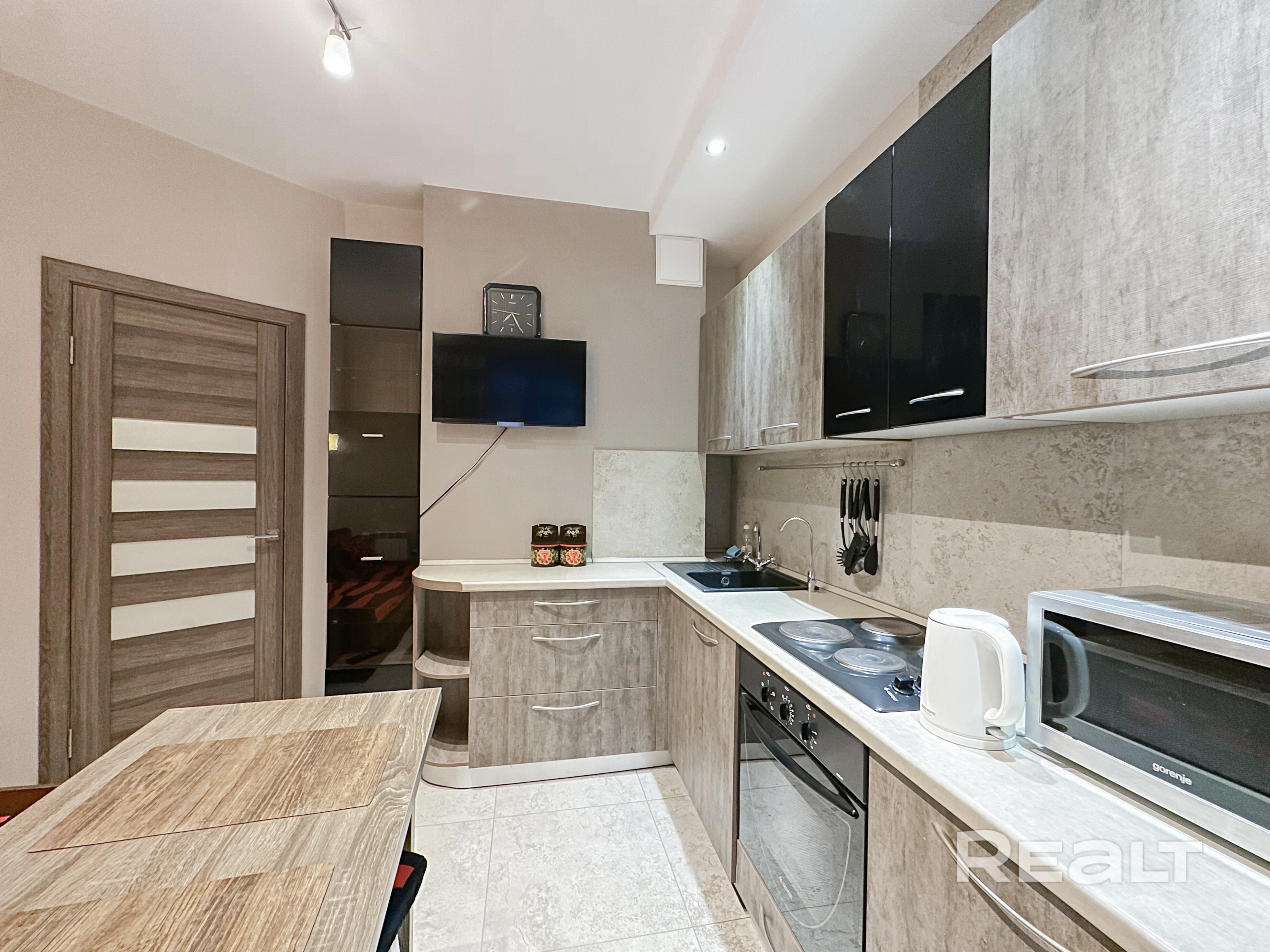 - Духовой шкаф, электроплита Gefest, СВЧ Gorenje, холодильник LG, телевизор Sony, фильтры для воды, полный комплект посуды