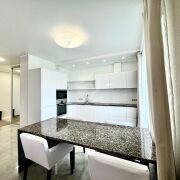 Сдается просторная и стильная трёхкомнатная квартира в отличном районе. В квартире установлен видеодомофон, тёплые полы, два санузла, водонагреватель, посудомоечная машина. В доме установлен лифт "Schindler", имеется подземный паркинг . Окна выходят во двор, через дорогу - водоем, велодорожка. В шаговой доступности - магазины "Виталюр" и Арена-Сити. Развитая инфраструктура.