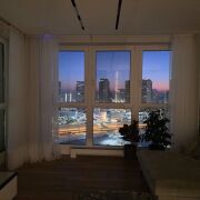 Солнечная квартира на 18эт. с панорамными окнами и видом на город и башни. Утром солнце в спальне, вечером — закаты в гостиной. Дизайнерский ремонт, кухня на заказ 45000р. с камнем, островом и подсветкой. Кондиционер Gree с удалённым управлением, умный замок, камера на входе, датчики протечки, итал. инженерия. Техника: робот-пылесос, вертикальный пылесос, стиральная машина с сушкой, 2 ТВ 65”, дух. шкаф с пиролизом, микроволновка, винный шкаф, встроенный холодильник, индукция, осмос, измельчитель