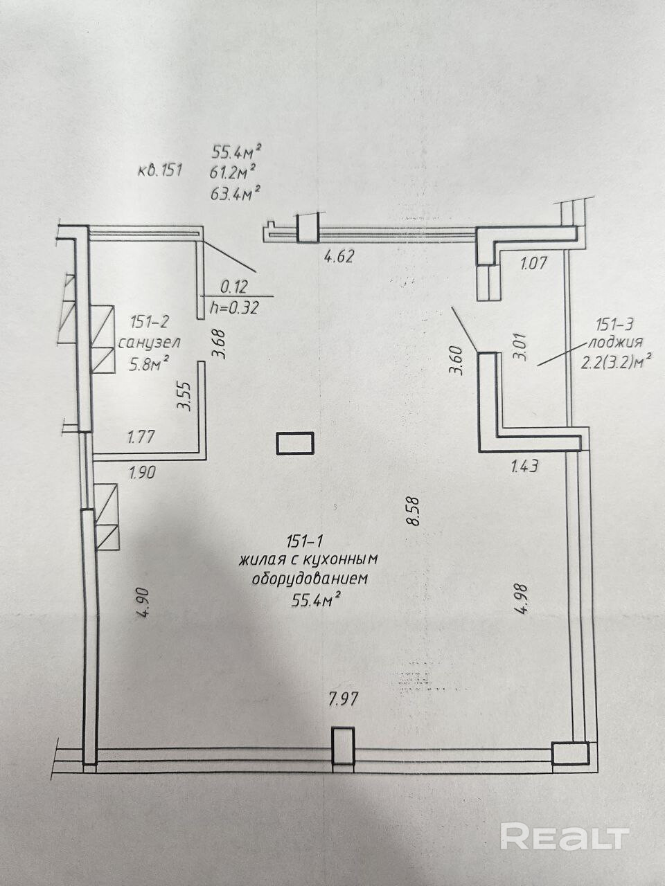 55.4 м²
