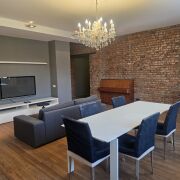 Современная уютная квартира большой площади в тихом центре Минска.В доме находится знаменитое кафе с историей Гурман. Парки , набережная, Троицкое предместье, множество кафе, магазинов -все в пешей доступности.Квартира перепланирована из 3х комнатной квартиры, выполнен дизайнерский ремонт с использованием только высококачественных материалов, делали для себя, не экономили.В наличии вся необходимая мебель и техника.Сдается на длительный срок. Первая оплата за 2 месяца, далее помесячно. Агентам пр