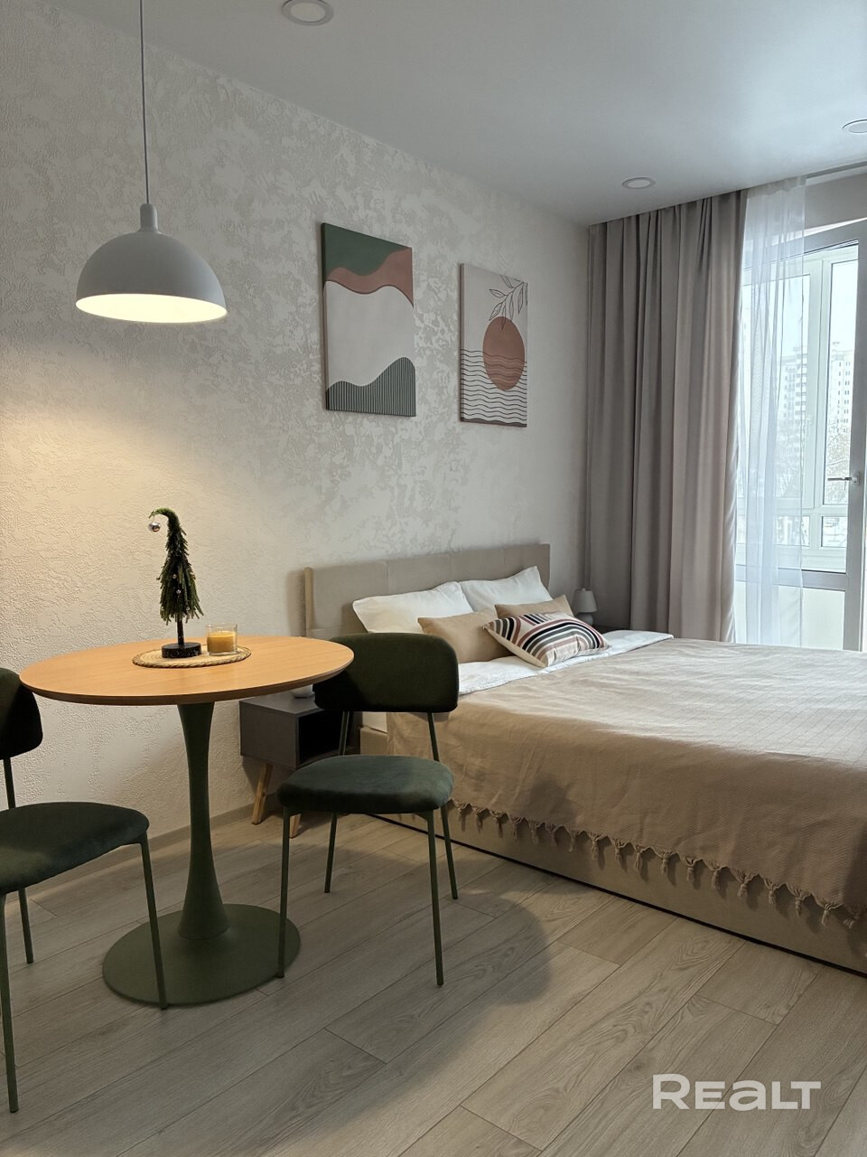 Сдаётся светлая студия возле метро Грушевка. Полностью меблированная, с техникой и декором - заезжайте и живите сразу после подписания договора. Студия идеально подойдёт для проживания 1-2 человек без животных. В студии есть необходимая техника для комфортной жизни : холодильник, стиральная машина, посудомоечная машина, варочная панель, печь свч, вытяжка, пылесос, отпариватель, а также посуда. Инфраструктура: "Соседи", Ozon, WB, фитнес-центр,мед. центр, кофейни, и Varka на Грушевке в 5мин.