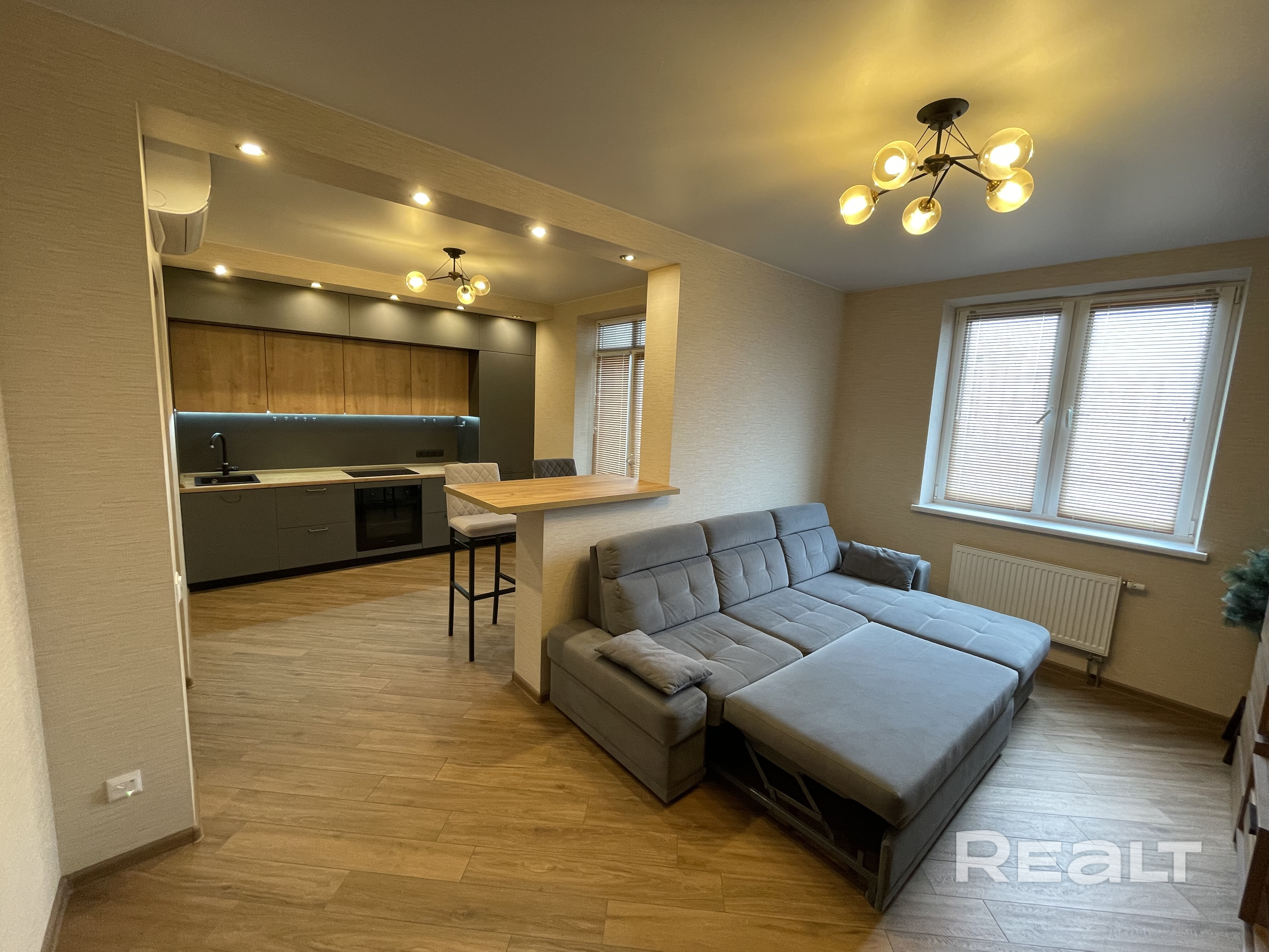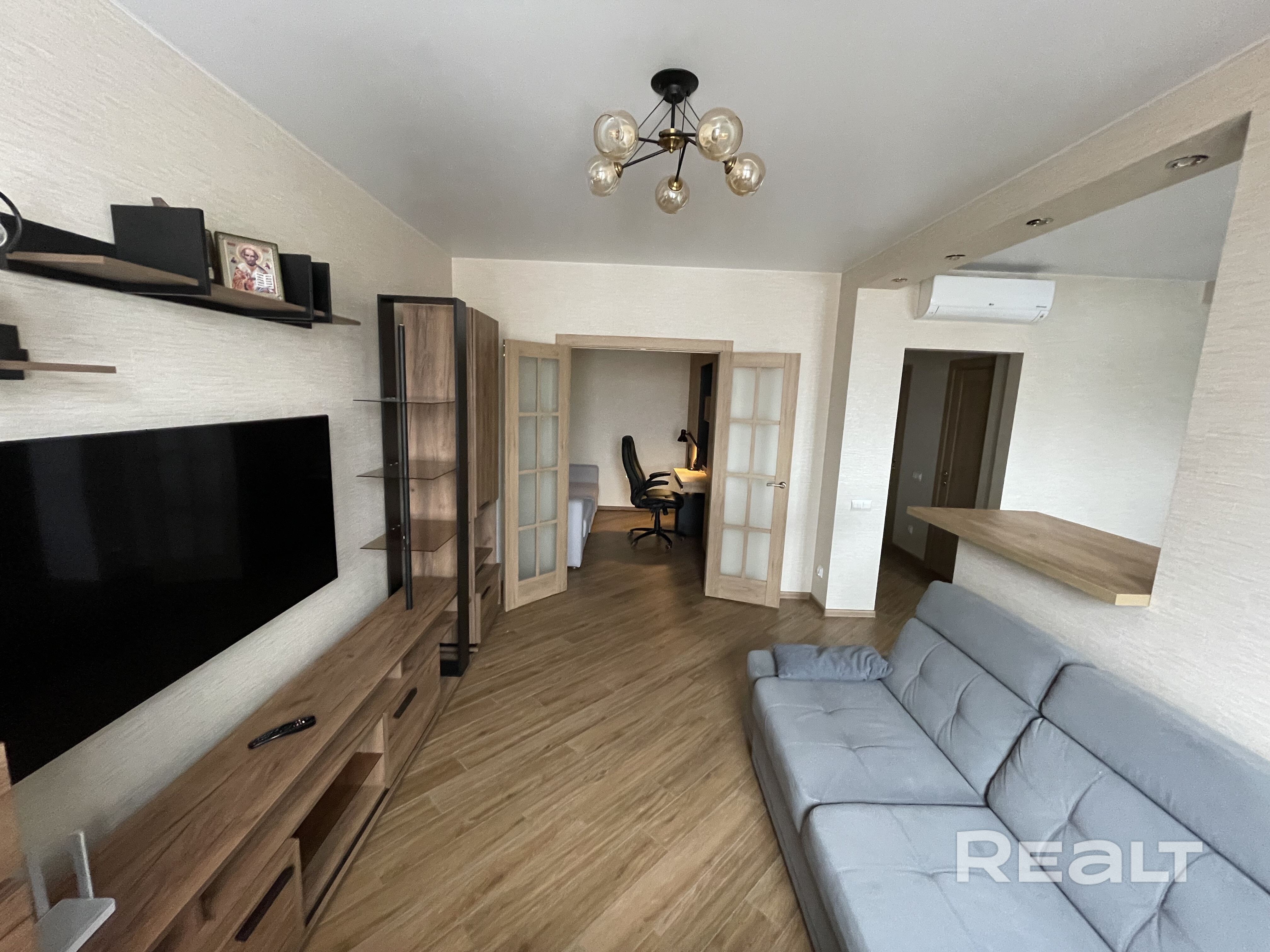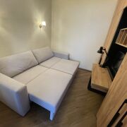 Квартира студия + спальня с рабочим местом. Два удобных раскладных дивана. Качественный встроенный шкаф, кухня с антресолями, техника - холодильник, электроплита, духовка, вытяжка, СВЧ печь, утварь и посуда. Просторная, лоджия. Полы с подогревом - итальянский керамогранит, бойлер, добротная сантехника, СМ LG, бесшумный кондиционер LG «Dual Invertor», TV LG «Nano Cell» 55` 4К. Грамотно организованное жилое и подсобное пространство и все необходимое для комфортного проживания в любое время года.