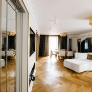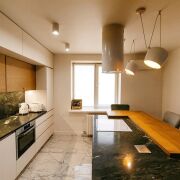 Сдается в долгосрочную аренду квартира 3-х комнатная с индивидуальной планировкой. Закрытая дворовая территория, шлагбаум, большая парковка, детская площадка. Эксклюзивный дизайн, высококачественный ремонт, мебель изготовлена на заказ. Вся квартира оснащена премиальной техникой. Окна выходят на 3 стороны, с соседями граничит только одна стена. На площадке 2 квартиры