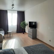 Сдам светлую 1-комнатную квартиру-студию на длительный срок. В тихом, спокойном месте возле метро ,,Грушевка" , рядом сквер. Двор со шлагбаумом, проезд для жителей дома. Есть все для жизни без проблем. Коммунальные платежи по льготам.