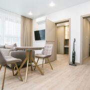 Квартира укомплектована всей необходимой бытовой техникой для вашего комфортного проживания: посудомоечная машина, стиральная машина, беспроводной пылесос, холодильник , духовой шкаф, микроволновая печь премиум сегмента ( BOSH LG Gorenie), бойлер, кондиционер, телевизор, варочная панель, беспроводной интернет.