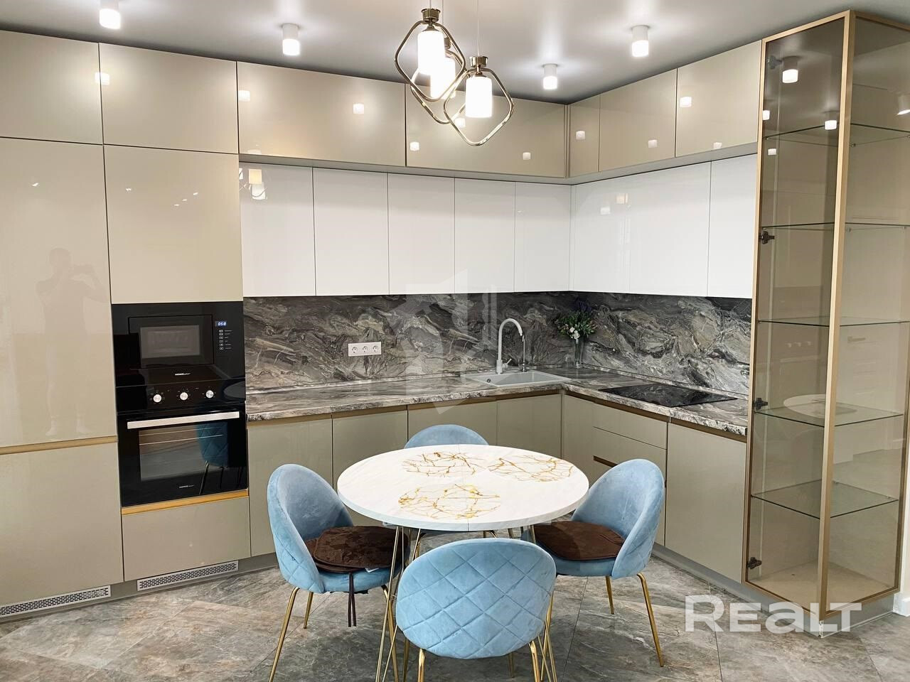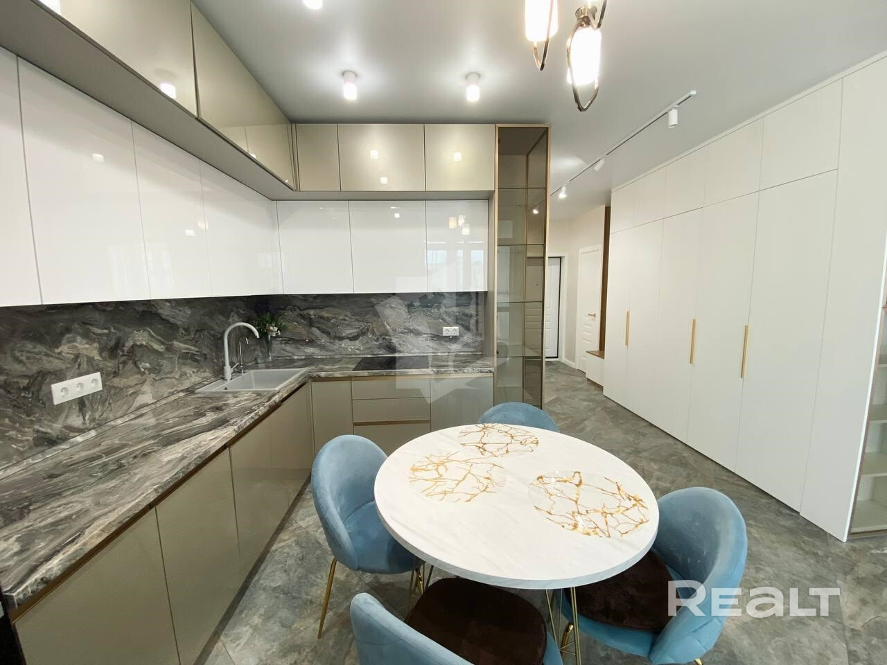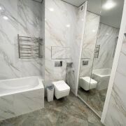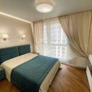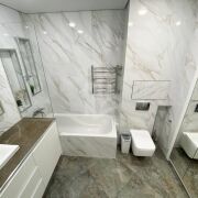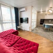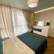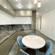 Общая площадь квартиры по СНБ более 77 м2. В квартире выполнен качественный ремонт с использованием дорогостоящих материалов. Кухня совмещена с гостиной, а также имеются две раздельные комнаты, которые оборудованы всем необходимым для комфортного проживания.