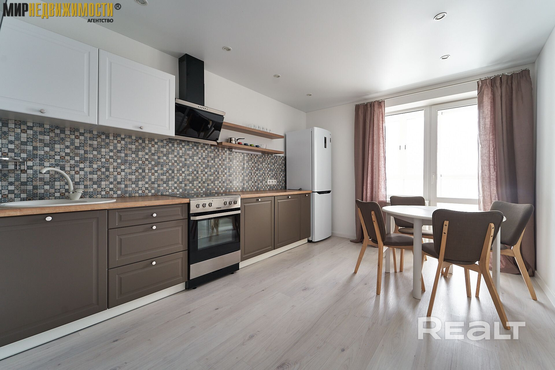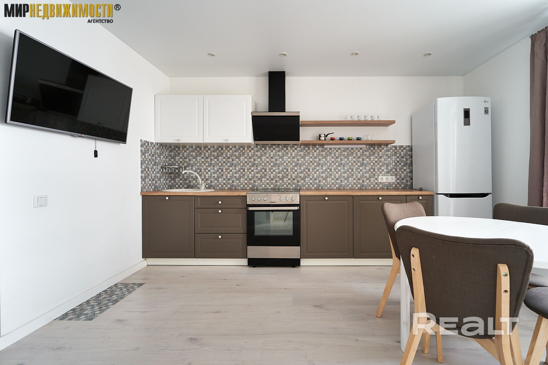 Квартира состоит из отдельной просторной спальни и кухни, оборудованной всей необходимой мебелью и техникой (варочная панель, духовой шкаф, телевизор, холодильник, стиральная машина)