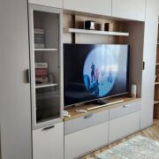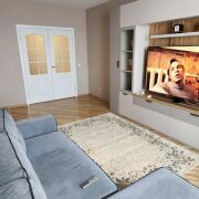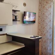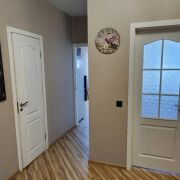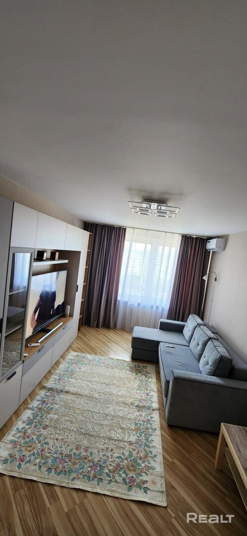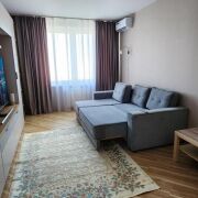 В квартире сделан косметический ремонт (перекраска всех стенок), установлена новая мебель, сплит-система инверторного типа (охлаждение, обогрев, ионизатор). Большой телевизор 65" и на кухне маленький 32". Просторная лоджия 4.9м2 с прекрасным видом с 11-го этажа на город. Квартира сдаётся в аренду впервые.