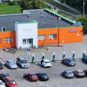Напротив дома через проезжую часть магазин Хит и 6 станций для зарядки электромобилей.