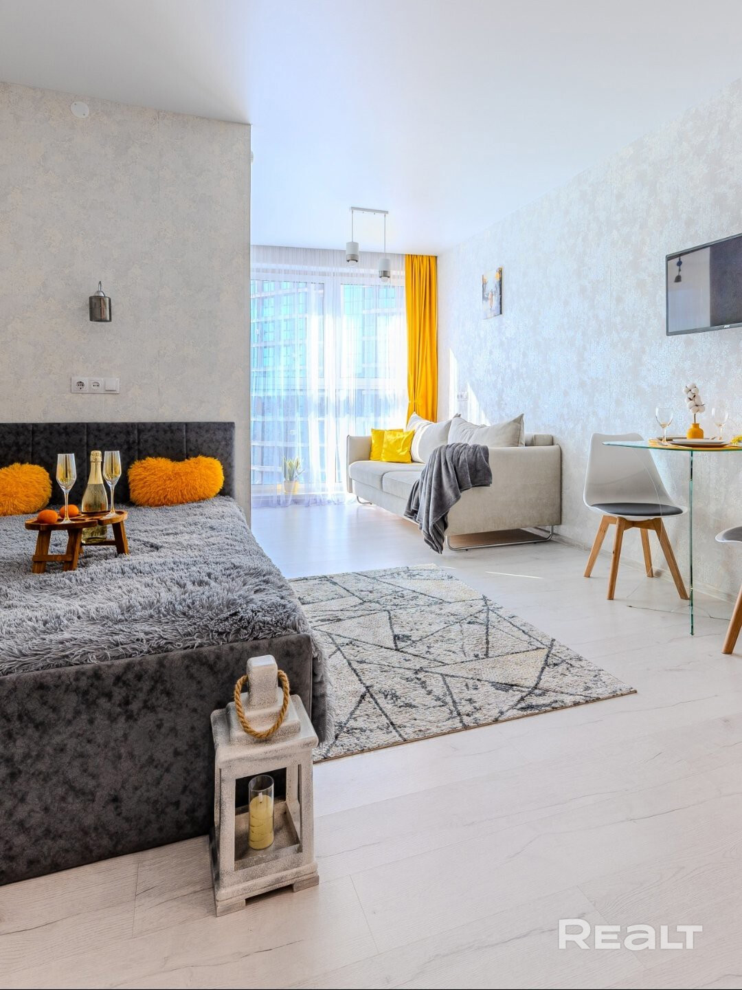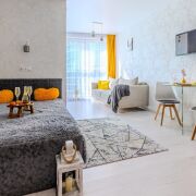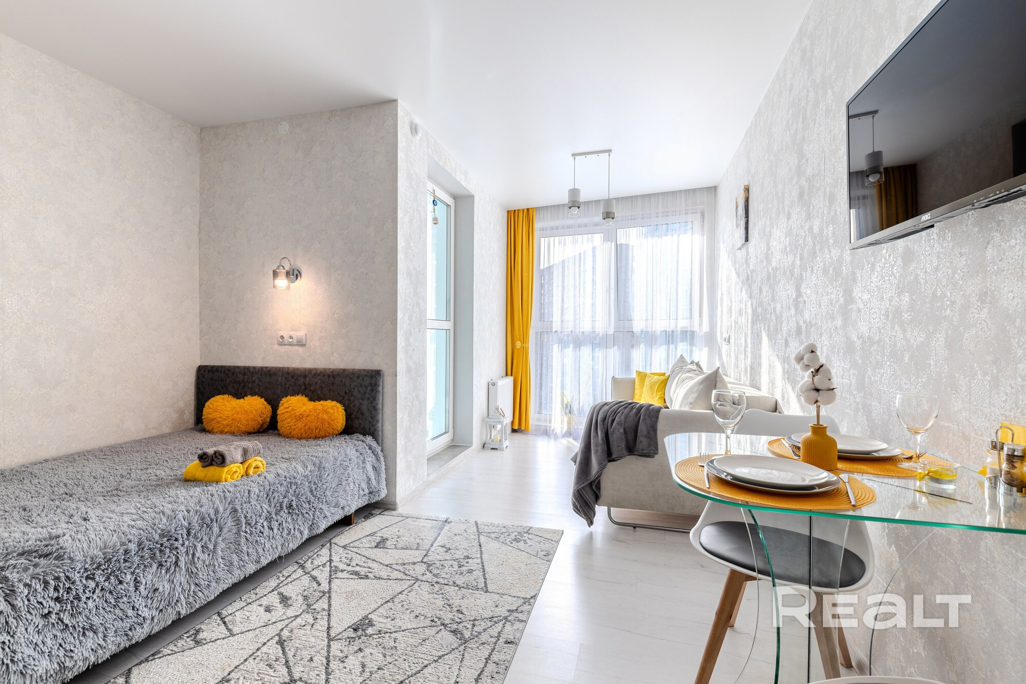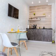 Студия оснащена всем необходимым для уютного проживания: Wi-Fi, Смарт ТВ+TV-каналы, вся посуда, фен, утюг, стиральная машина, холодильник, СВЧ-печь