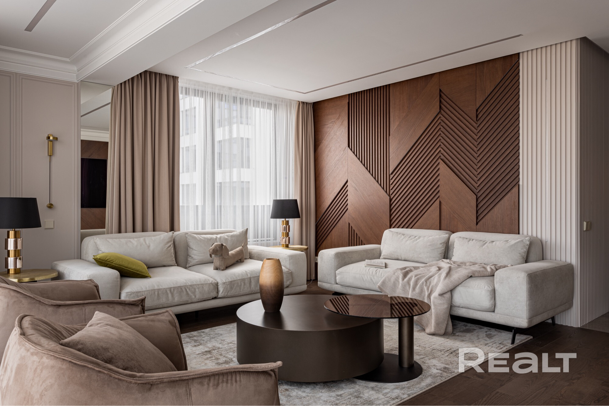 Квартира премиум класса в жилом комплексе Маяк-Минска, дизайн интерьера, авторское сопровождение выполнено одной из ведущих дизайн студий, в ходе ремонта использованы материалы известных мировых производителей Coswik, Lazio, Vileroy & Boch, Hansgrohe,, окна гостиной выходят на Национальную библиотеку, Слепянскую водную систему, парк Писателей. Квартира состоит из 3-х изолированных комнат ( одна из них мастер-спальня) 2-х санузлов, 2-х гардеробных, постирочной, гостиной. Паркинг